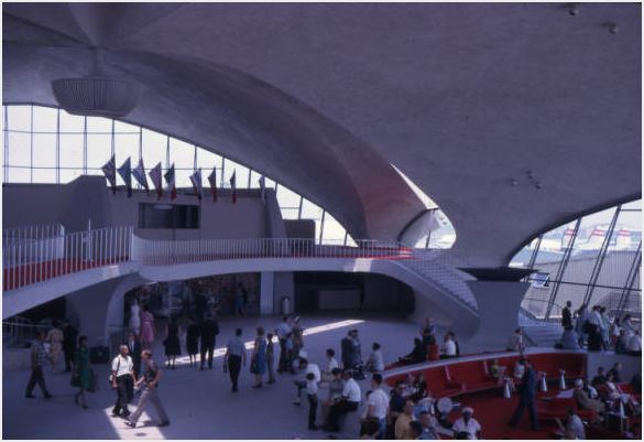 Interior shot of the TWA Flight Center. Designed by Eero Saarinen, 1957-1961, opened in 1962 (after Saarinen’s death). Jack Goldman Papers, Cranbrook Archives.