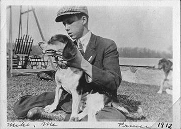 When Henry was growing up, the Booth family had beagles, Prince and Mike, and a great Dane, Ginger. Mike, according to Henry, “ … loved having a fuss made over him, one time going so far as being pushed around in a doll carriage while wearing a canvas hat.” Oh to have a photograph of that! When Henry had his own family, black and tan German shepherds predominated.
