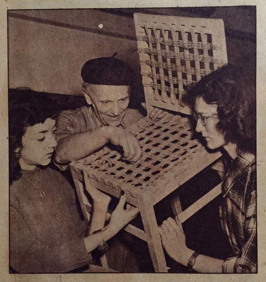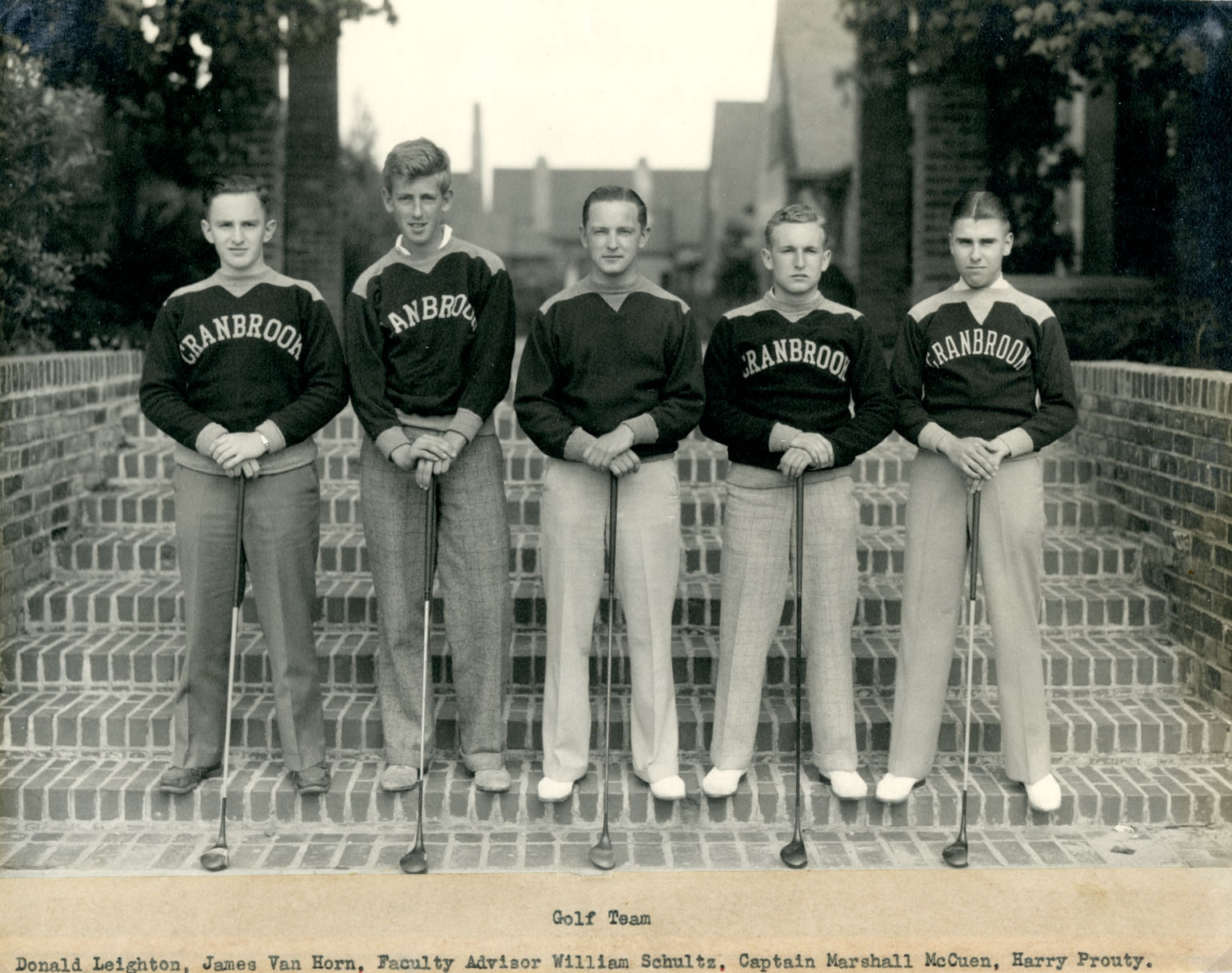From left: Carleton McClain, Henry S. Booth and Margaret Russell interviewing former Cranbrook School Headmaster, Harry Hoey at his home, 1964.