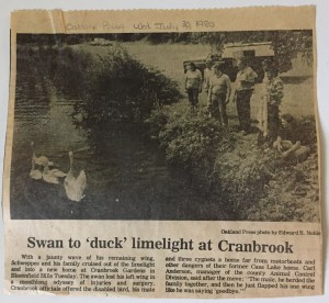 Swan to ‘duck’ limelight at Cranbrook. Oakland Press, Jul 20, 1980.