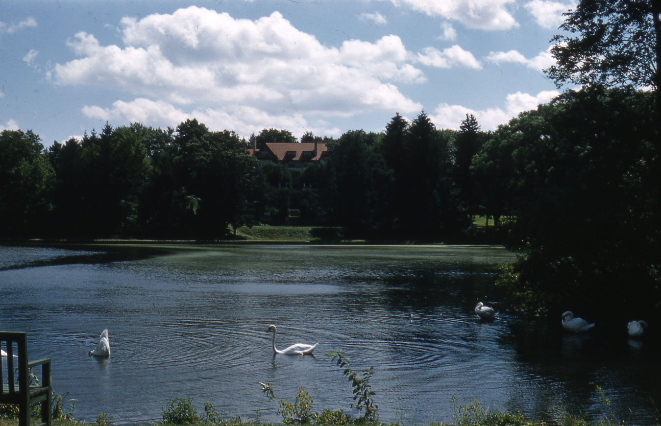 Swans on Kingswood Lake, 1953. Courtesy Cranbrook Archives.