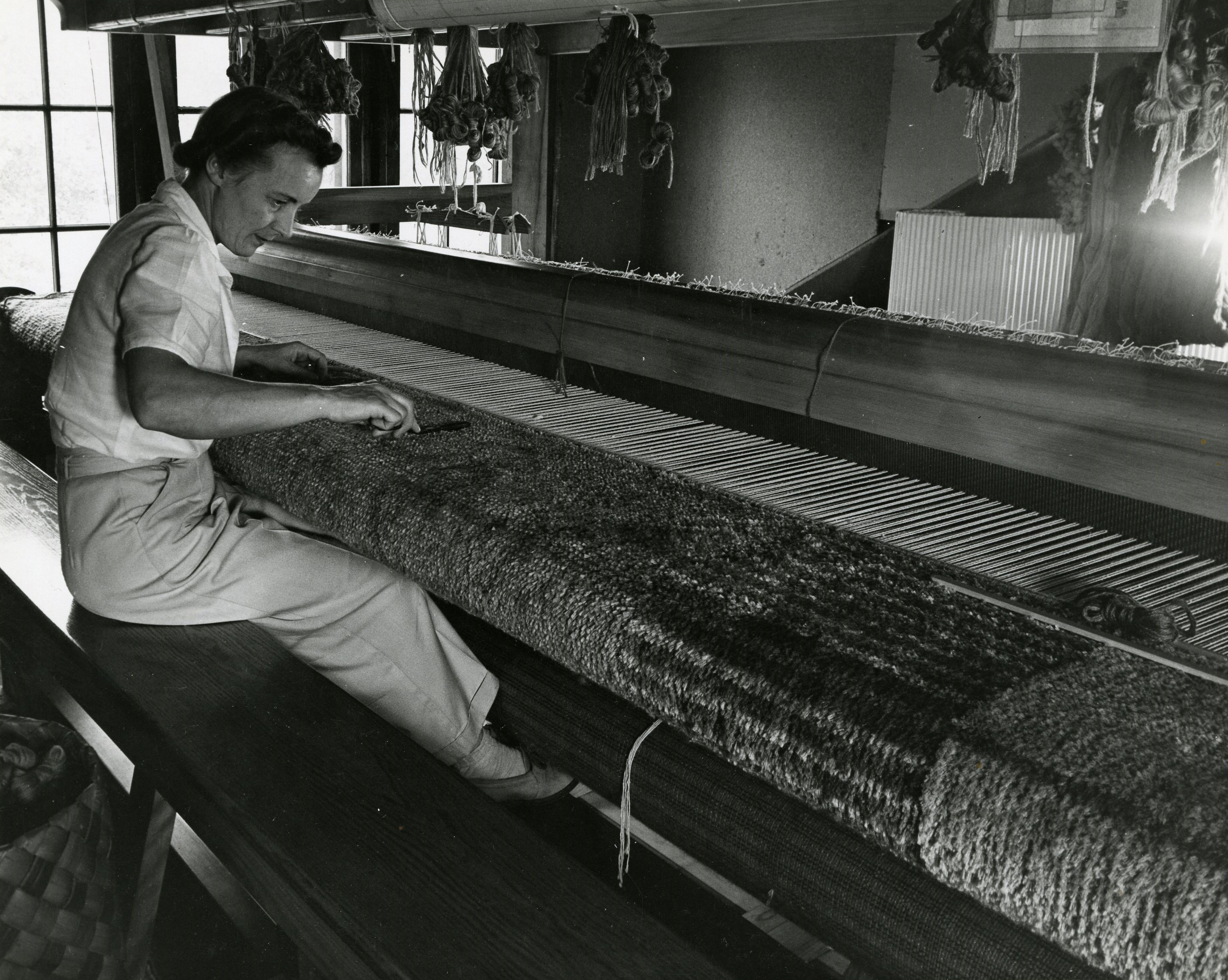 Edna Vogel in her weaving studio, July 1942. Joe Munroe, photographer. Courtesy of Cranbrook Archives.