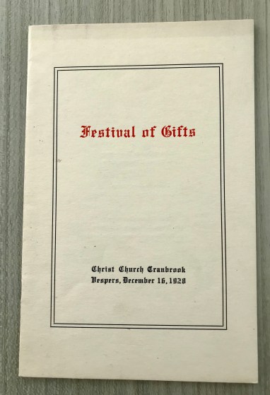 Festival of Gifts order of procession and liturgy, 1928. Courtesy Cranbrook Archives.