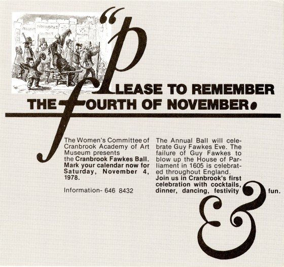 Flyer for the Guy Fawkes Ball, 1978. Courtesy Cranbrook Archives