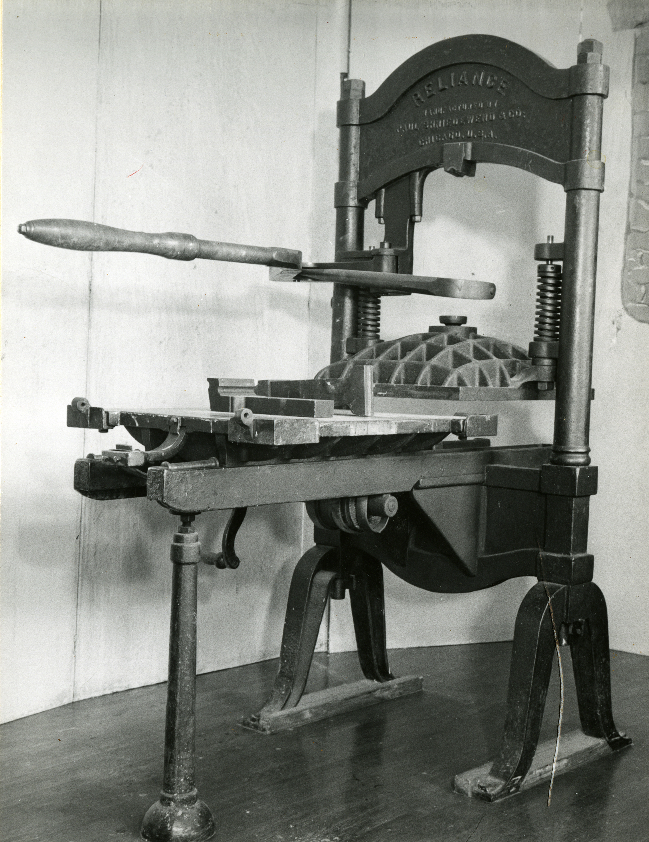 Lion Reliance Printing Press used at the Cranbrook Press, 1900-1902. Copyright Cranbrook Archives, Center for Collections and Research.
