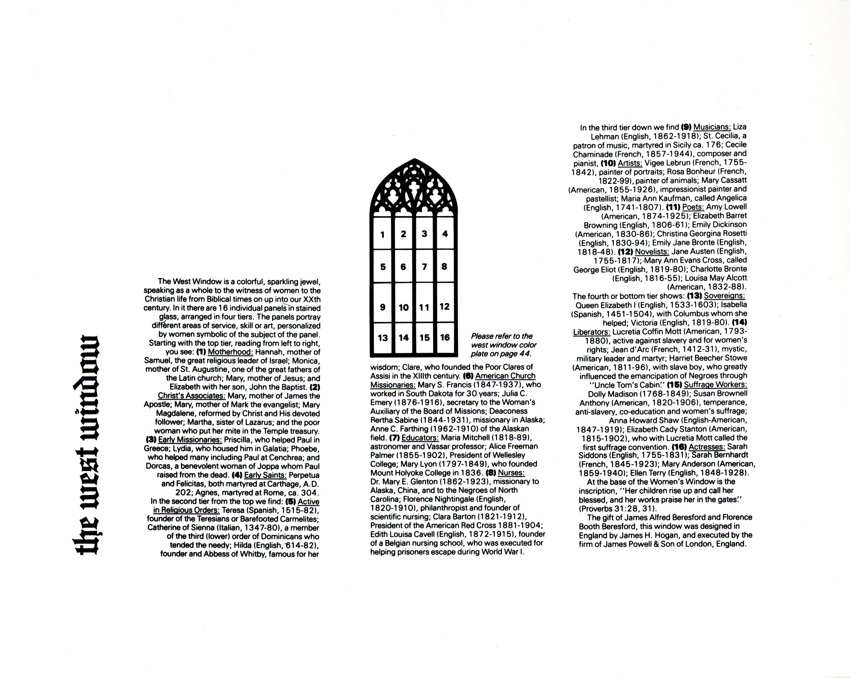 Guide to the Women’s Window. Christ Church Cranbrook—the visitor’s guide, 1982. Illustration, Joyce Nagel. Photographer, Jack Kausch. Courtesy Cranbrook Archives