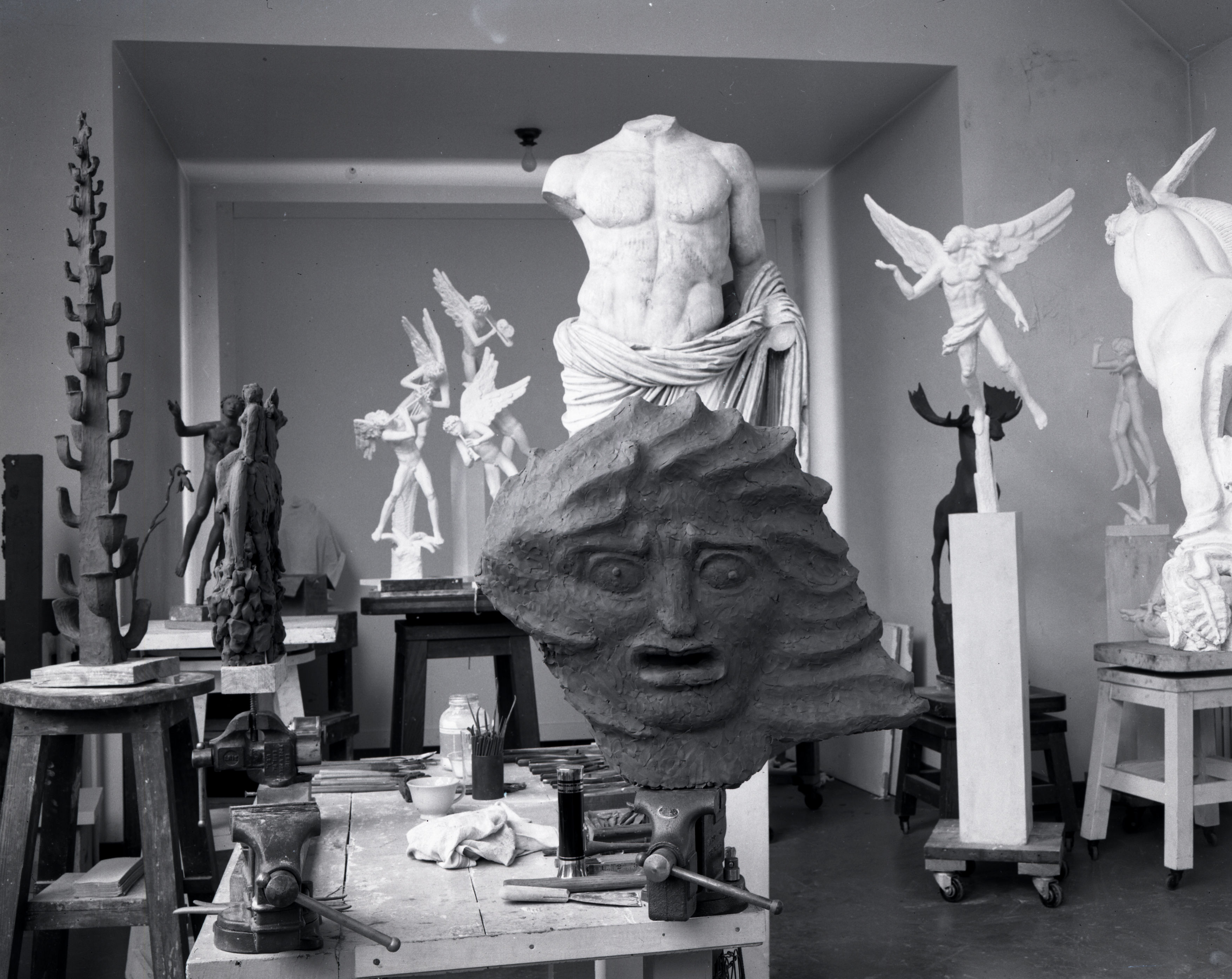 Maróti was nevertheless a perfect fit for Cranbrook: he was another polymath like the Saarinens as architect, archaeologist, painter, designer, as well as sculptor. The Detroit News of March 1927 reported Professor Maróti’s conviction that “because architecture is the fundamental art the work of the sculptor and the painter is most valuable when it is architecturally conceived.” Professor Saarinen adds in the same article that it is one thing to model a figure, but “quite another thing to see that figure in relation to a building and to express that decoration architecturally rather than pictorially.” This in a nutshell is Maróti’s claim to fame.