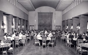 Eero’s later career as a furniture designer would see him incorporate modern material advances like plywood, parachute netting, and plastic into his designs, but it was as a young man, designing for his father, that he carefully split his designs down the middle between evolutionary in the Dining Hall and revolutionary in the Auditorium.