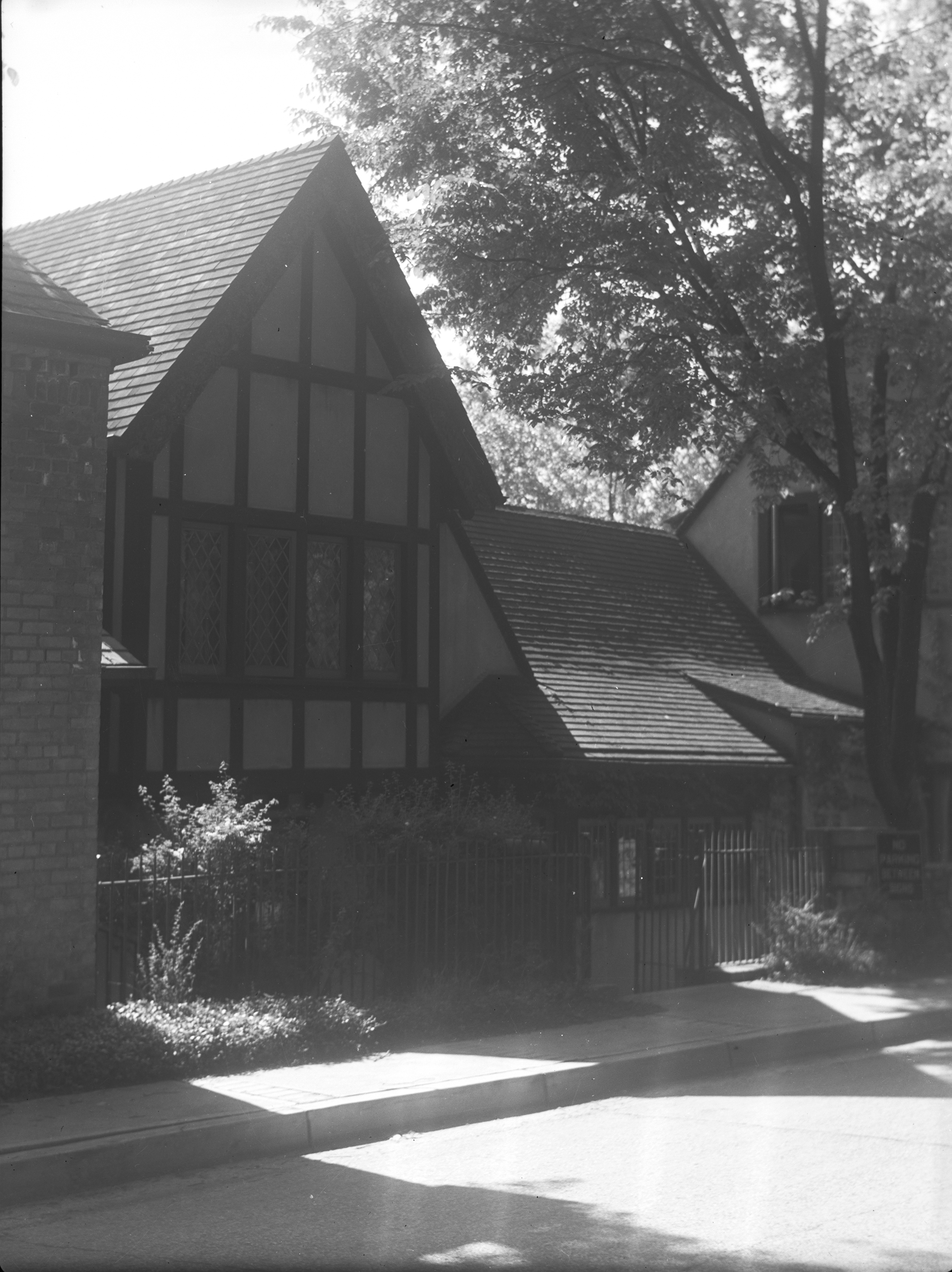 View of the front of George and Flora Leslie’s apartment, known as the Ram’s House, circa 1935-1938. Courtesy of Cranbrook Archives.