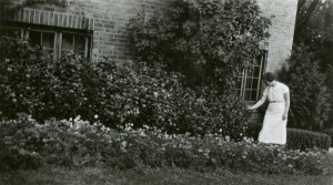 George Leslie (left) and Flora Leslie (right) in the garden of their apartment, the Ram’s House, at Brookside School, circa 1935. Courtesy of Cranbrook Archives.