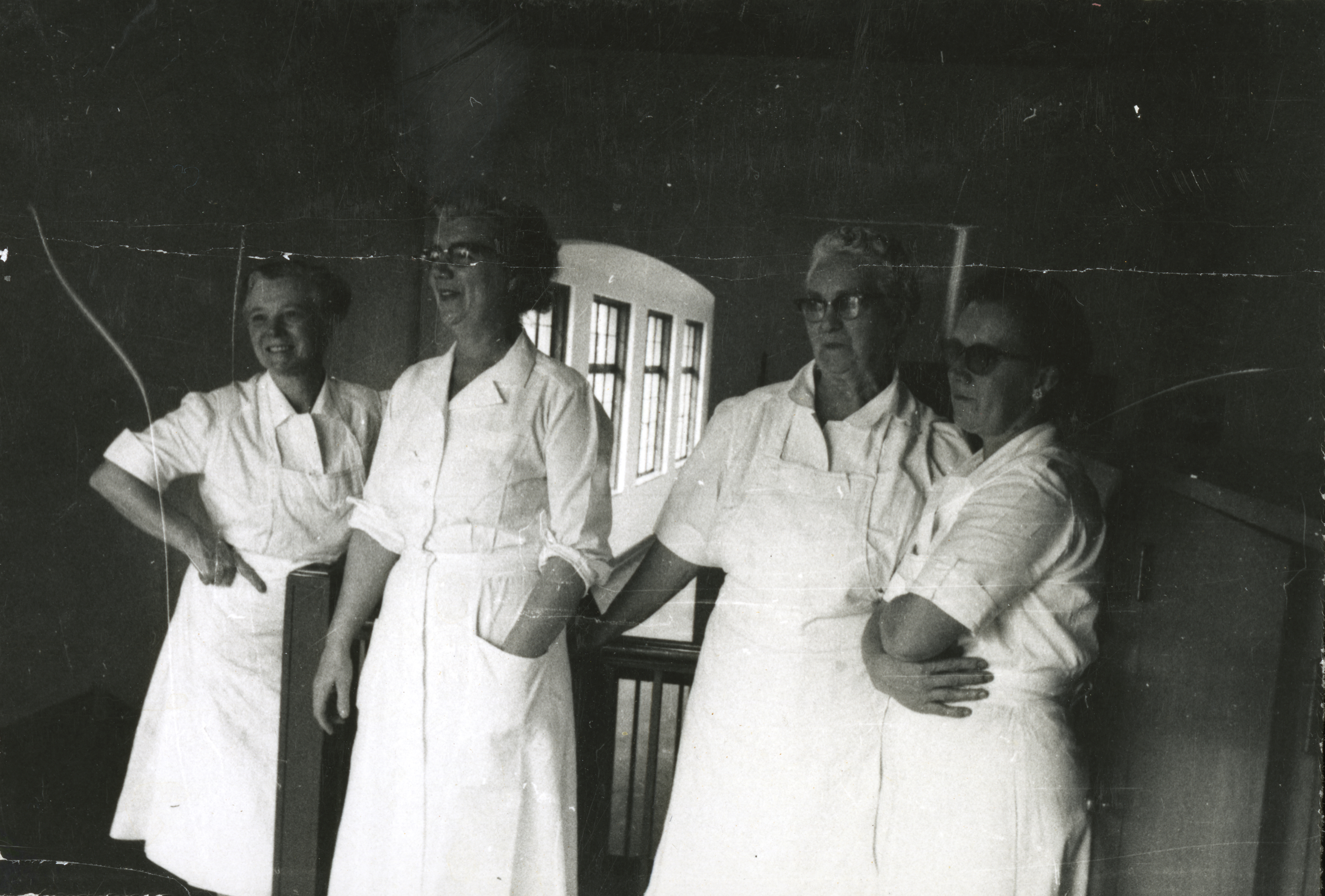 Flora Leslie (second from left) with cooking staff at Brookside School. Courtesy of Cranbrook Archives.