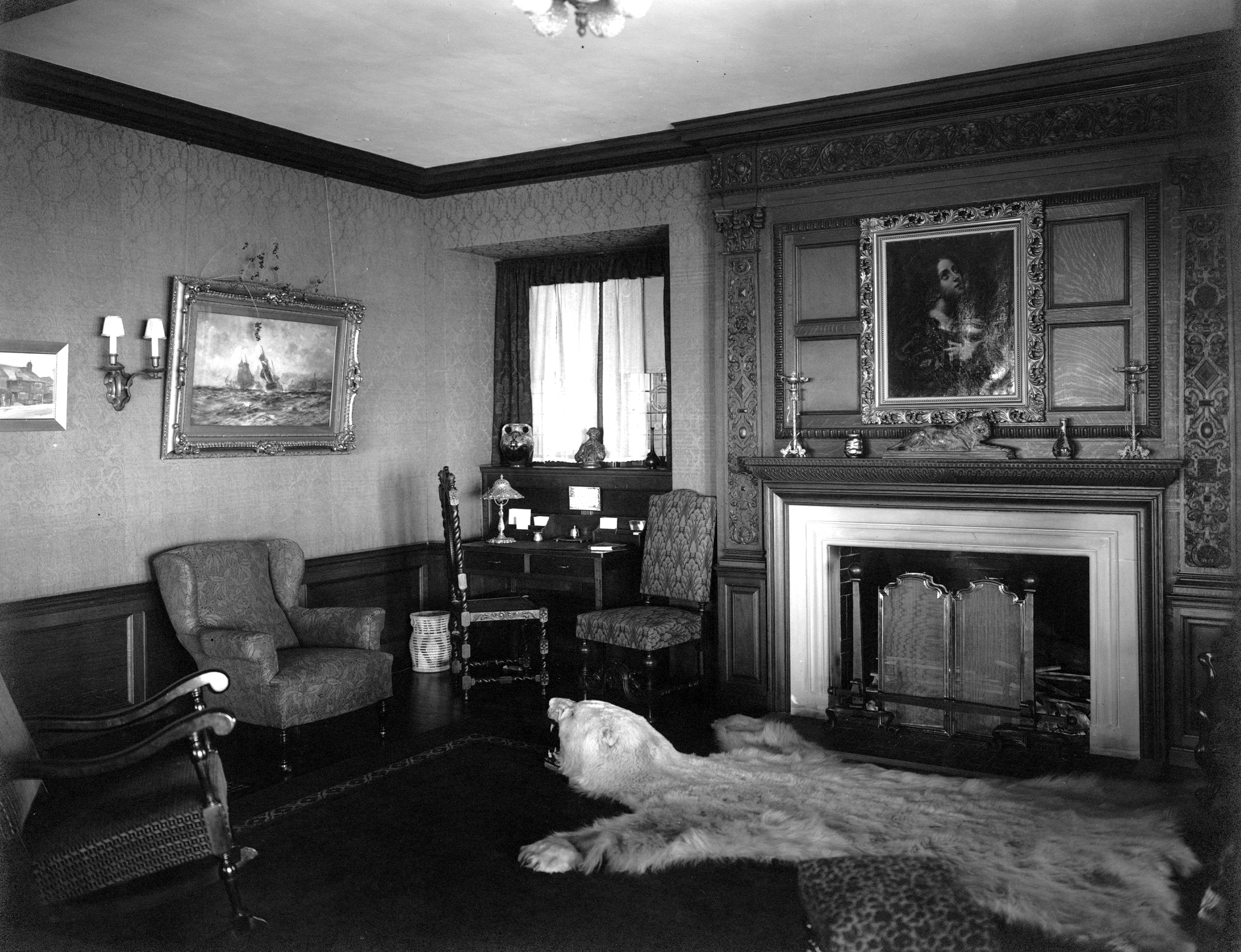 Titled, “This Way to the Strengell-Hammarstrom Gallery,” the card depicts a wall of portraits of Strengell family members, each complete with a short anecdote.