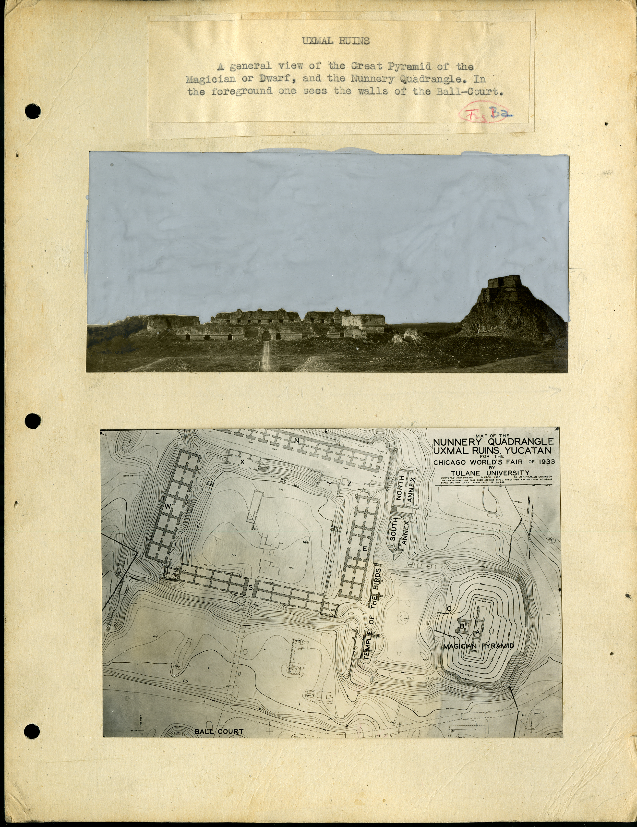Born in Grand Rapids, Michigan, in 1881, Merrill received a Bachelor of Engineering degree from the University of Michigan in 1902. After working in various engineering positions, including working on plans for locks in Tianjin, China between 1918 and 1921, Merrill established the firm Spooner and Merrill with Charles Spooner in Grand Rapids. During this time, he developed a passion for archaeology, making several expeditions. This led to research in Uxmal, Yucatan, where he worked on detailed plans for reproducing the Maya Temple at the 1933 Chicago World’s Fair Exposition. Merrill also mapped projects in Alaska, California, New Mexico, Texas, and Italy, as well as for the University of Pennsylvania Museum’s expedition to Coclé, Panama.