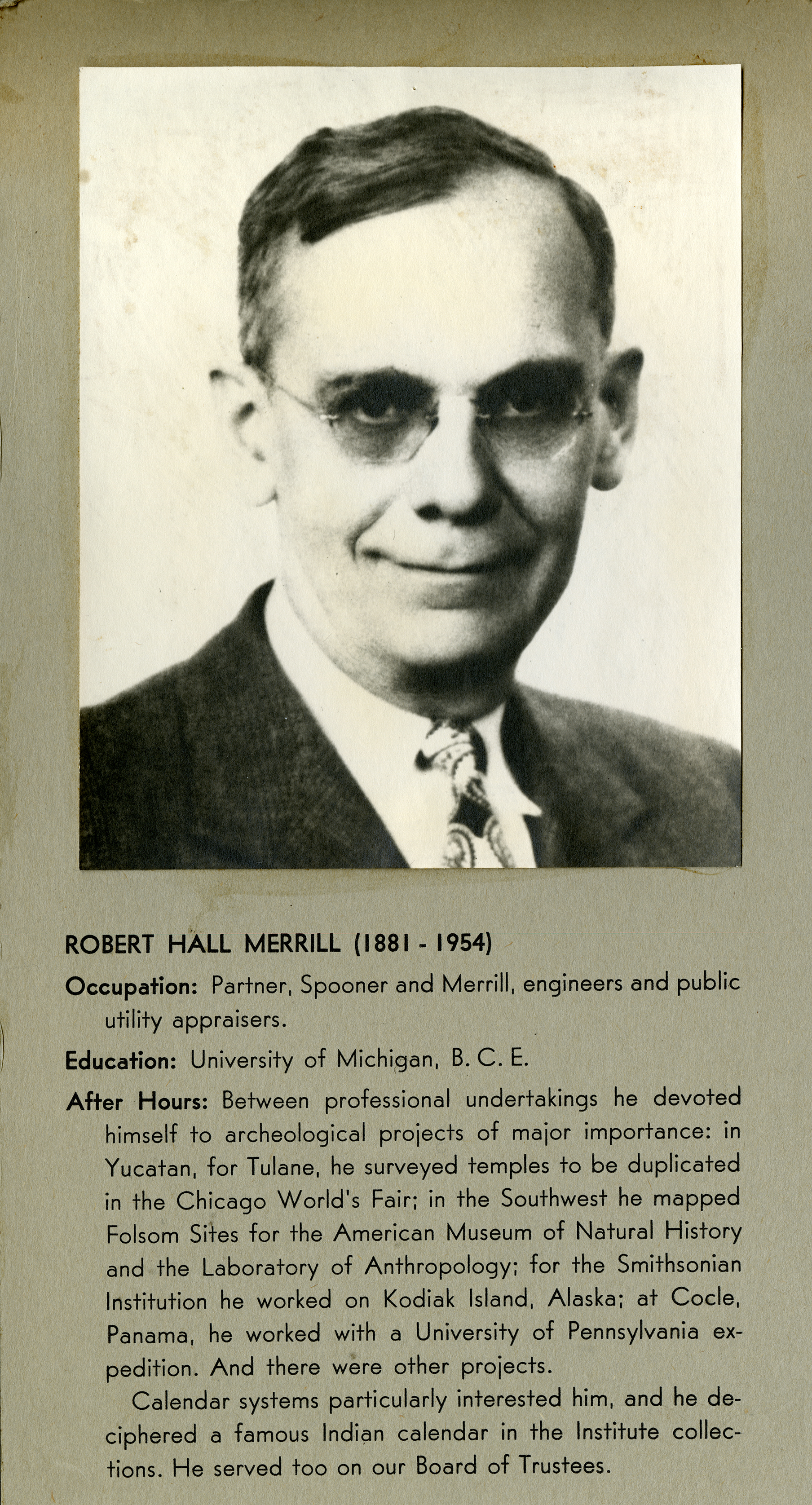 Merrill was an engineer who developed an interest in archaeology, becoming an authority on the Maya calendar, particularly focusing on time measurement. Merrill was associated with the Institute of Science in the 1940s and 1950s, but the Merrill Papers in Cranbrook Archives document over fifty years of his research, graphs, findings, and conclusions.