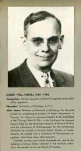 Merrill was a member of the Cranbrook Institute of Science Board of Trustees between 1944 and 1953, also acting as a consultant in the Anthropology Department (1948-1949) and on the Research Committee (1949-1952). His publication, “The calendar stick of Tshi-zun-hau-kau” was published by the Institute of Science in 1945. Merrill died June 5, 1955, in Grand Rapids.