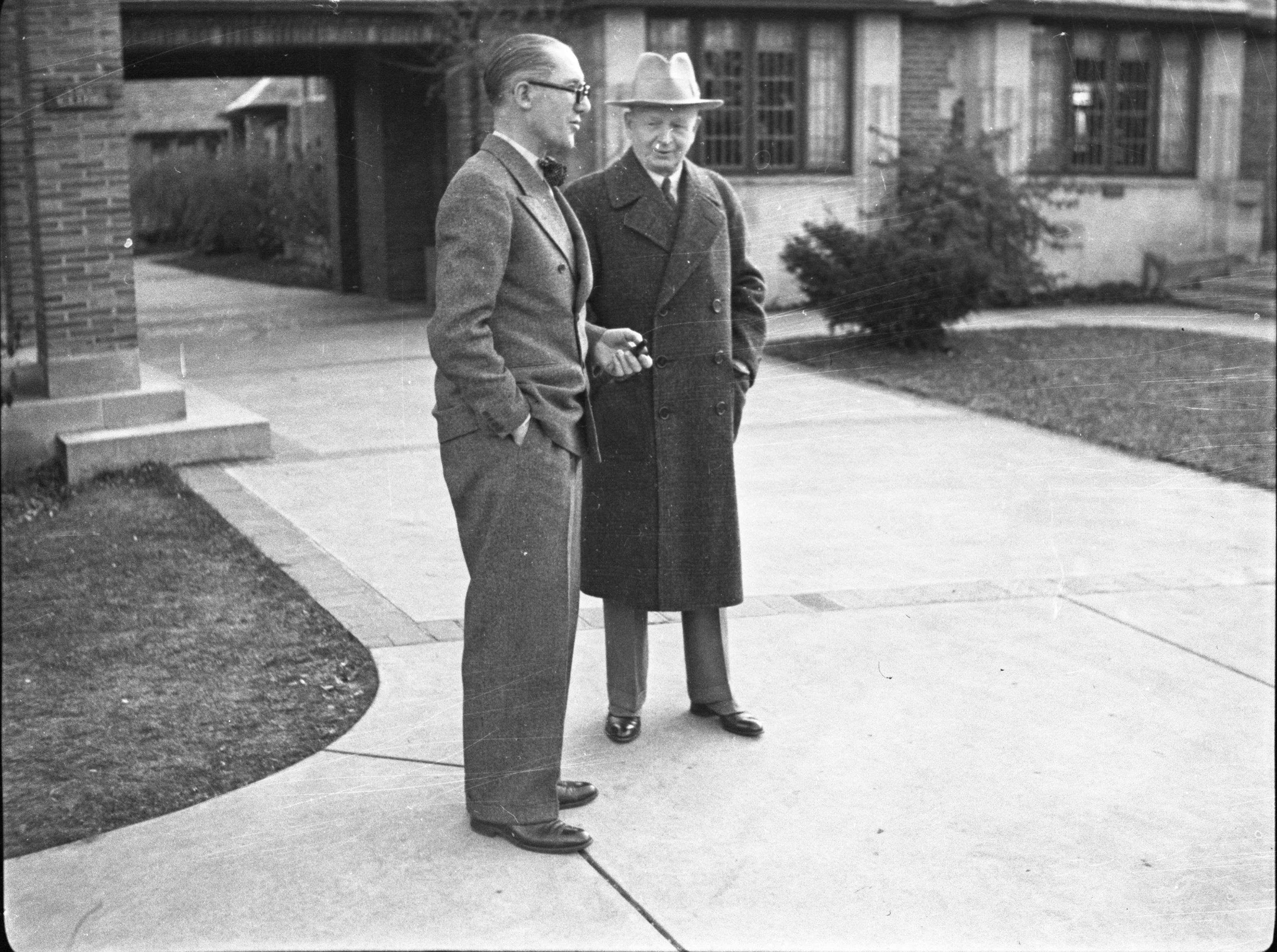 Le Corbusier, with pipe, and Eliel Saarinen at Cranbrook, November 1935. Richard G. Askew, photographer. Cranbrook Archives.