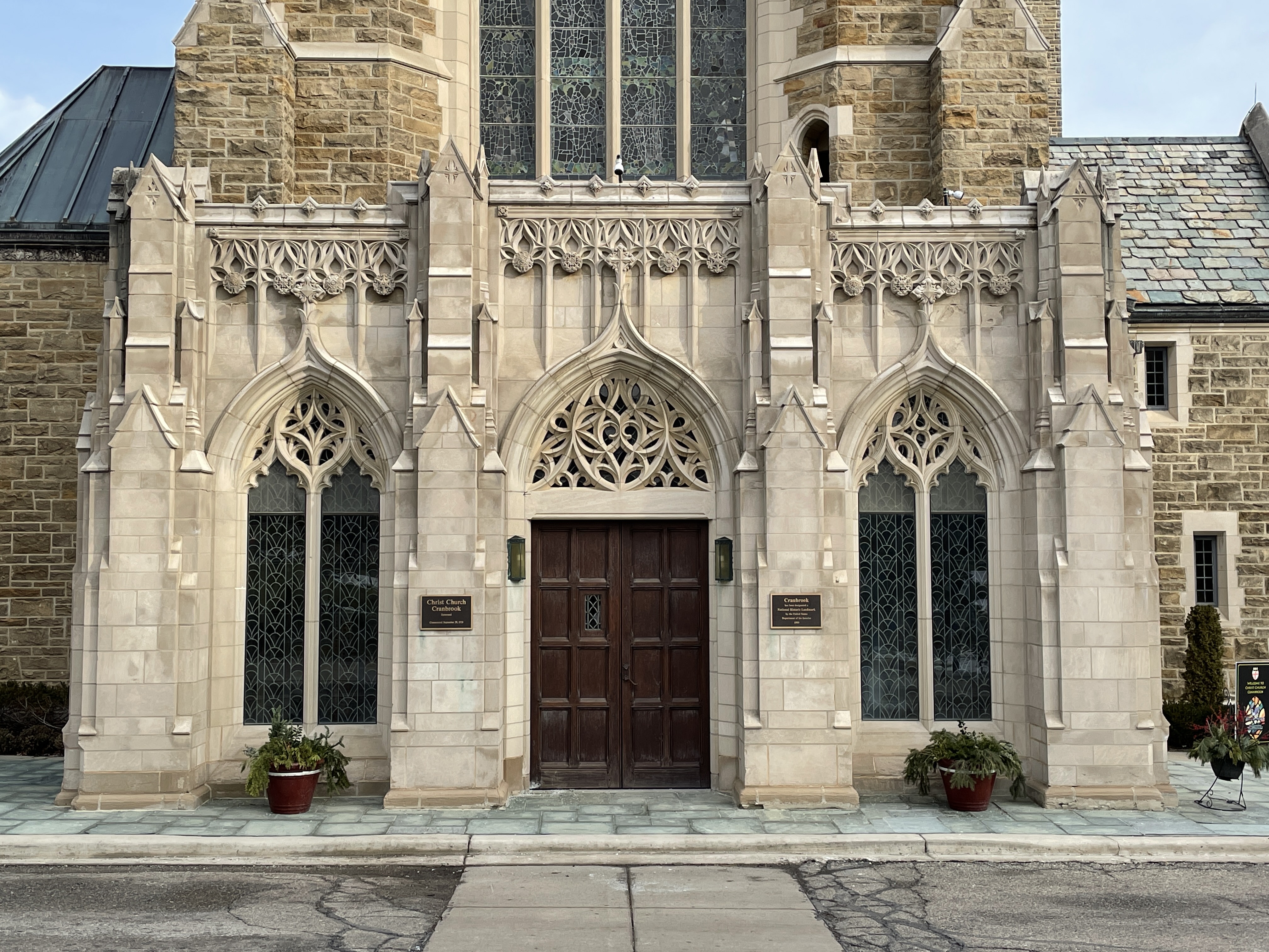 Non-official National Historic Landmark plaque at Christ Church Cranbrook, on right. The official plaque was changed at some point.