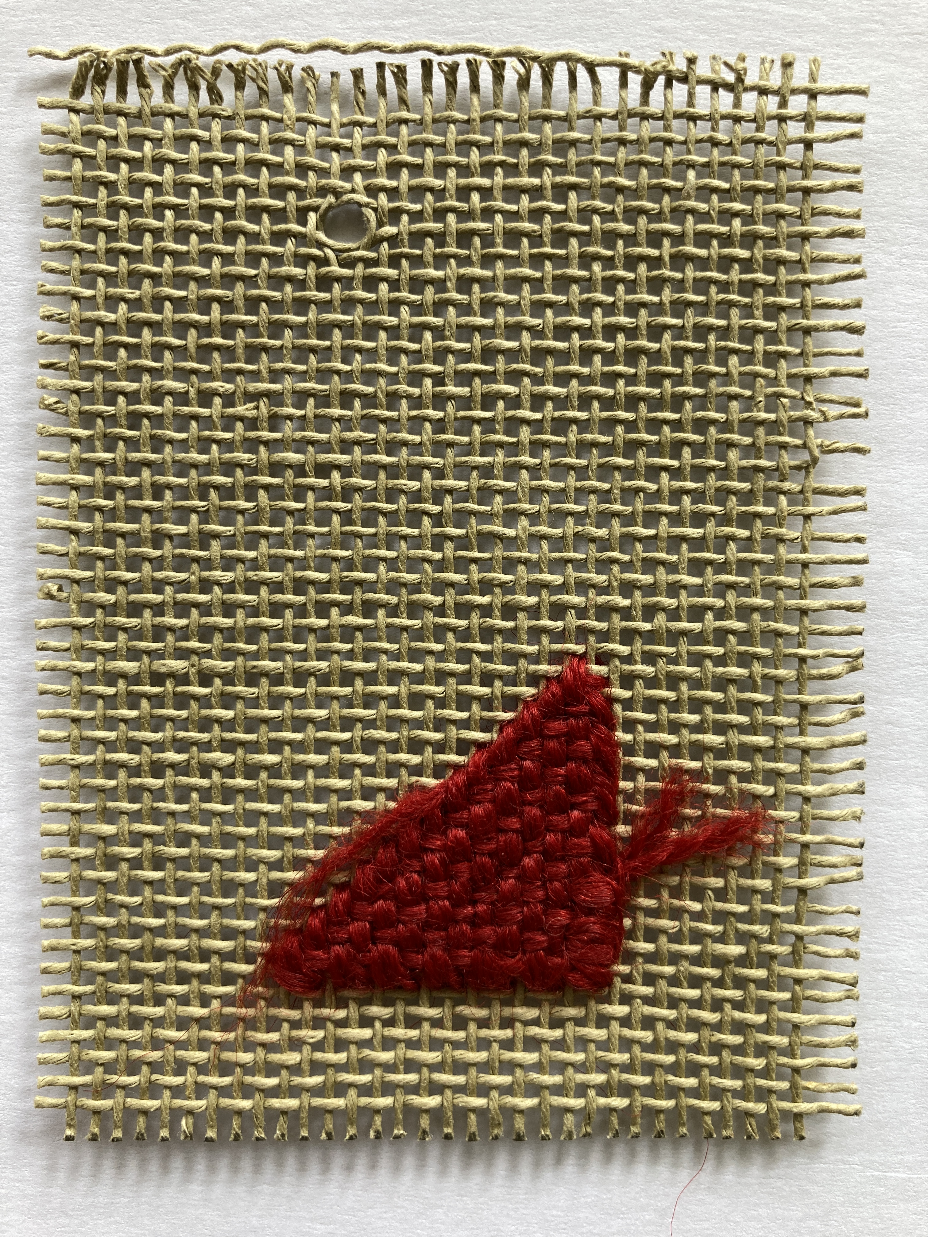 In September 1957, Earnshaw sent a sample of the canvases they usually use and a sample of wool which she thought would be very beautiful in the Chapel. After considering a sage green background, the Committee eventually selected red in the same shade as that which is contained in the stained-glass window.