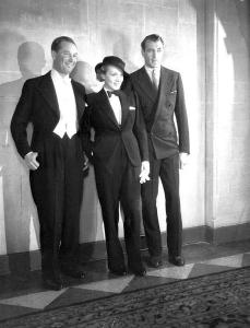 Ladies, you could always opt for a Marlene Dietrich look in a tuxedo, seen in the photograph below scandalizing the public in 1932 with Maurice Chevalier and Gary Cooper. Note that where Chevalier is wearing white tie and tails, and Cooper a business suit, only Dietrich is in a tuxedo.