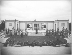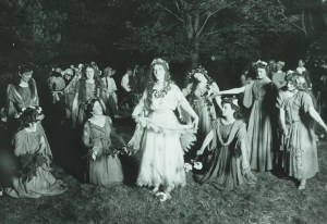 Aesthetic Dress may have inspired the costuming for theatrical events staged by members of the Detroit Society of Arts and Crafts. Images of the 1910 Masque of Arcadia show soft, flowing gowns and floral crowns, while costumes for the 1916 Cranbrook Masque were designed by Helen Plumb and Katherine and Alexandrine McEwen, with fine fabrics appropriate to the newly opened Greek Theater.