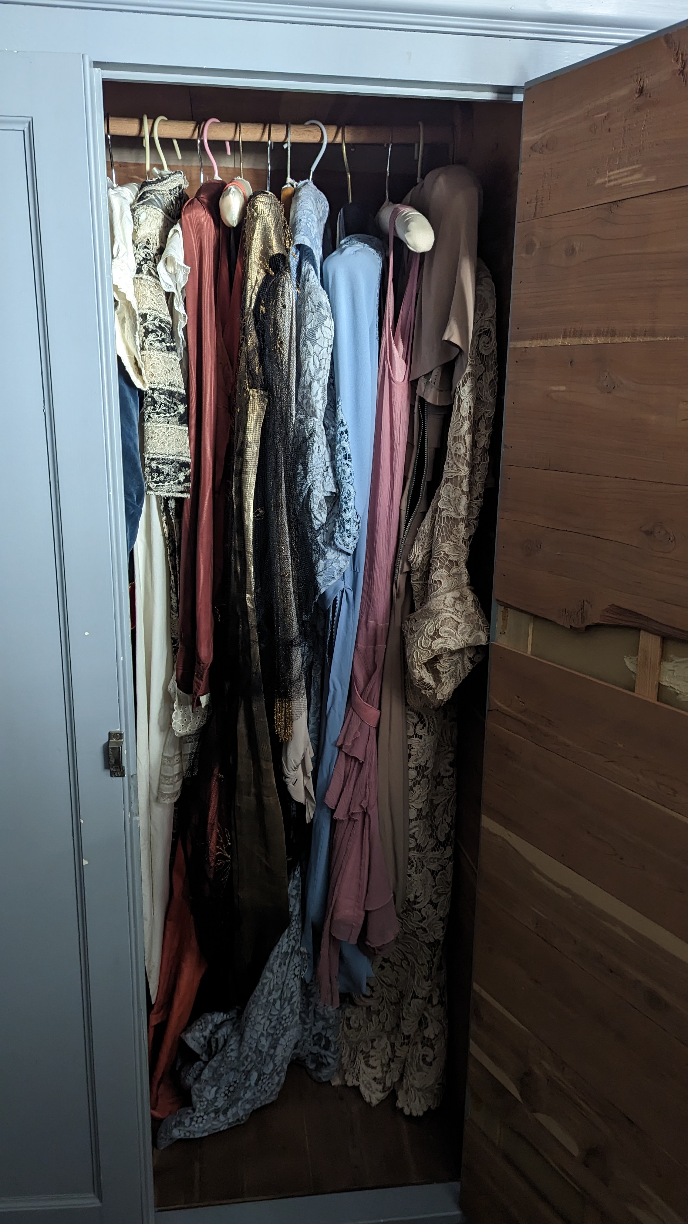 But what is hanging in the closets of the Cranbrook House attic? The attic storage contains dozens of historic garments that were saved for historic value, sentimental associations with Cranbrook’s founding family, or most commonly for their usefulness as costumes for festive occasions like Henry Scripps Booth’s Twelfth Night Gala or the Festival of Gifts.