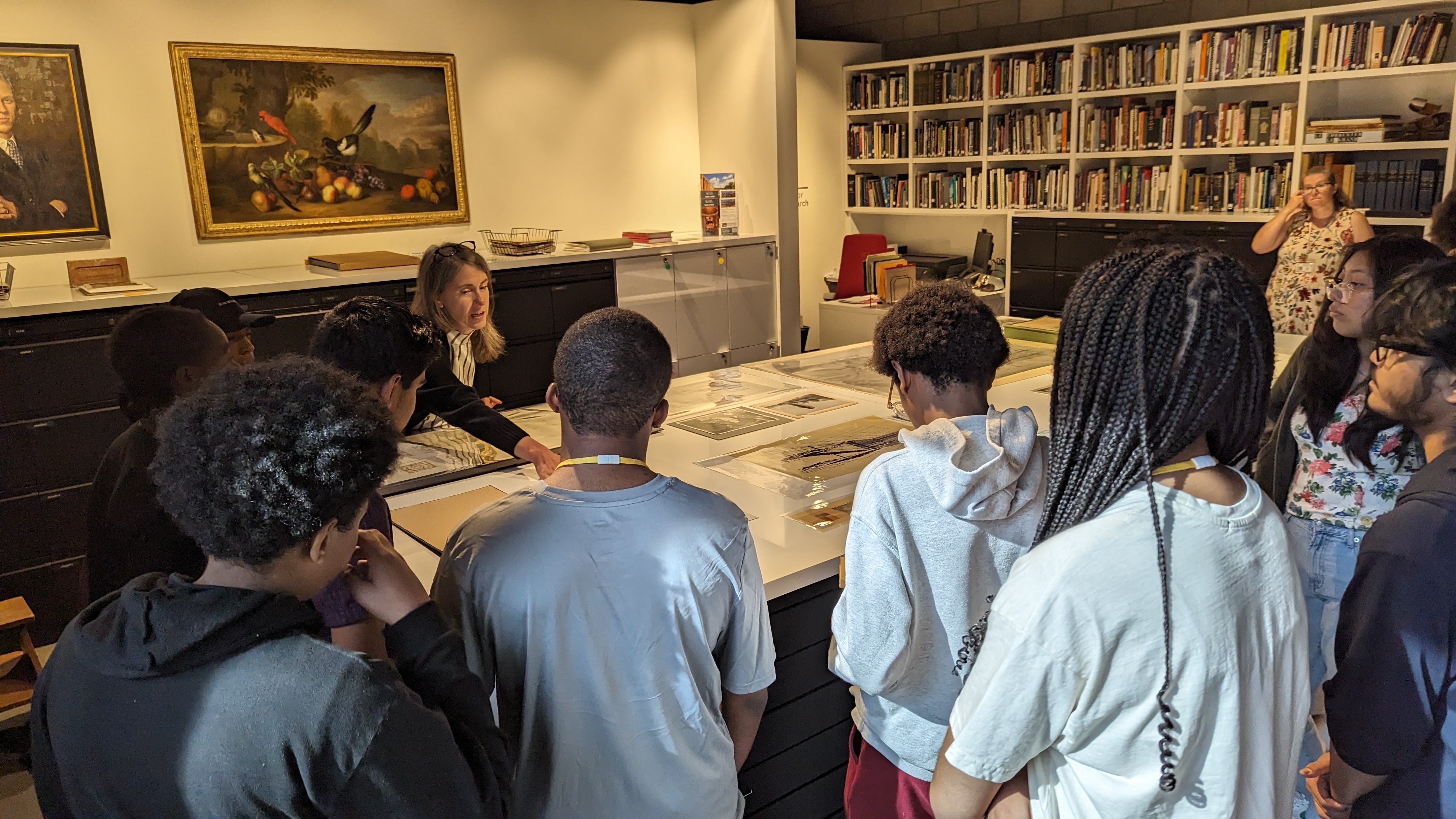 Head Archivist Deborah Rice showing our HUB students architectural treasures from Cranbrook Archives. Nina Blomfield, photographer.