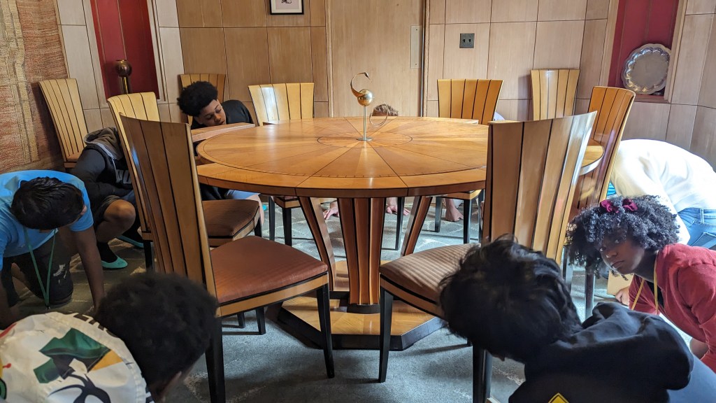 Then, we spent a class period each at Cranbrook House, Saarinen House, and the Frank Lloyd Wright-designed Smith House. In each location, students carried their sketchbooks and made notes and drawings about the architecture. I was especially impressed at the students’ analytical skills. In fact, while I usually love talking about the nitty-gritty specifics of Saarinen House, I found myself sitting much more quietly, asking students questions about what they noticed, liked, or disliked in each room. Listening to their observations and conversation helped me see each space anew.