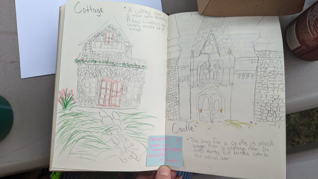 On most Wednesdays, we asked the students to complete an assignment in their sketchbook that week. After learning about architectural title blocks in the Archives, we made stickers to help label each assignment: “Doors: Real and Imagined,” “An Ideal Window with a View,” and so on. The sketching and design assignments aimed to promote close looking, observational skills, and imagination—they also helped me learn that most students ideal window would overlook the beach!