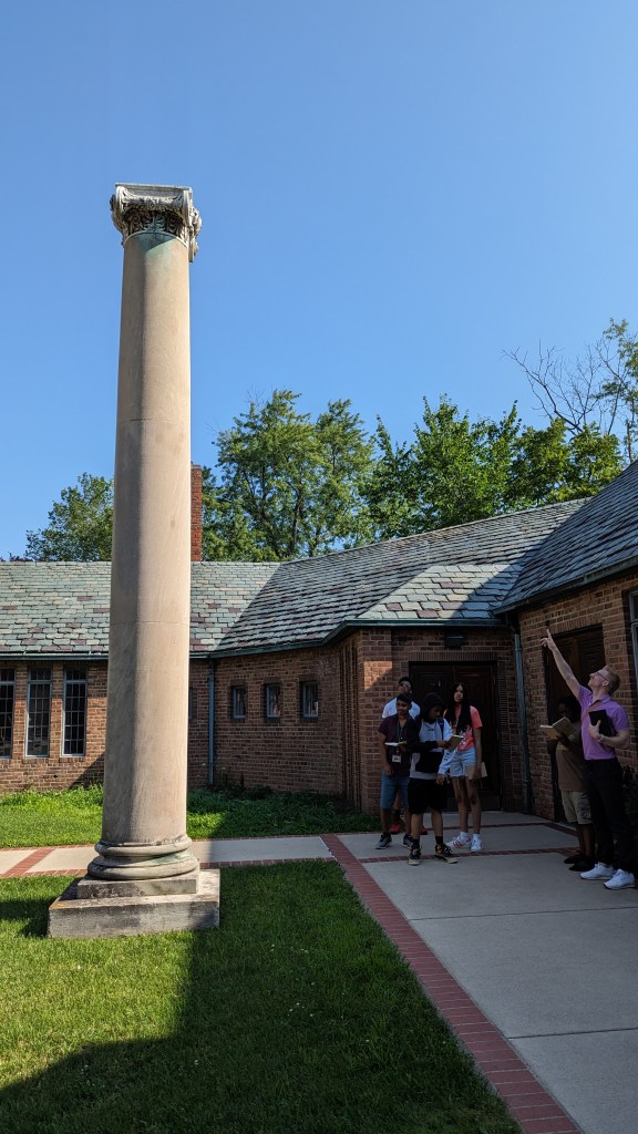 Halfway through the course, I gave a lesson on architectural ornament (a passion of mine, and of Eliel Saarinen) and classical orders. This was followed by a spirited hunt through Cranbrook’s courtyards looking for Doric, Ionic, and Corinthian orders.