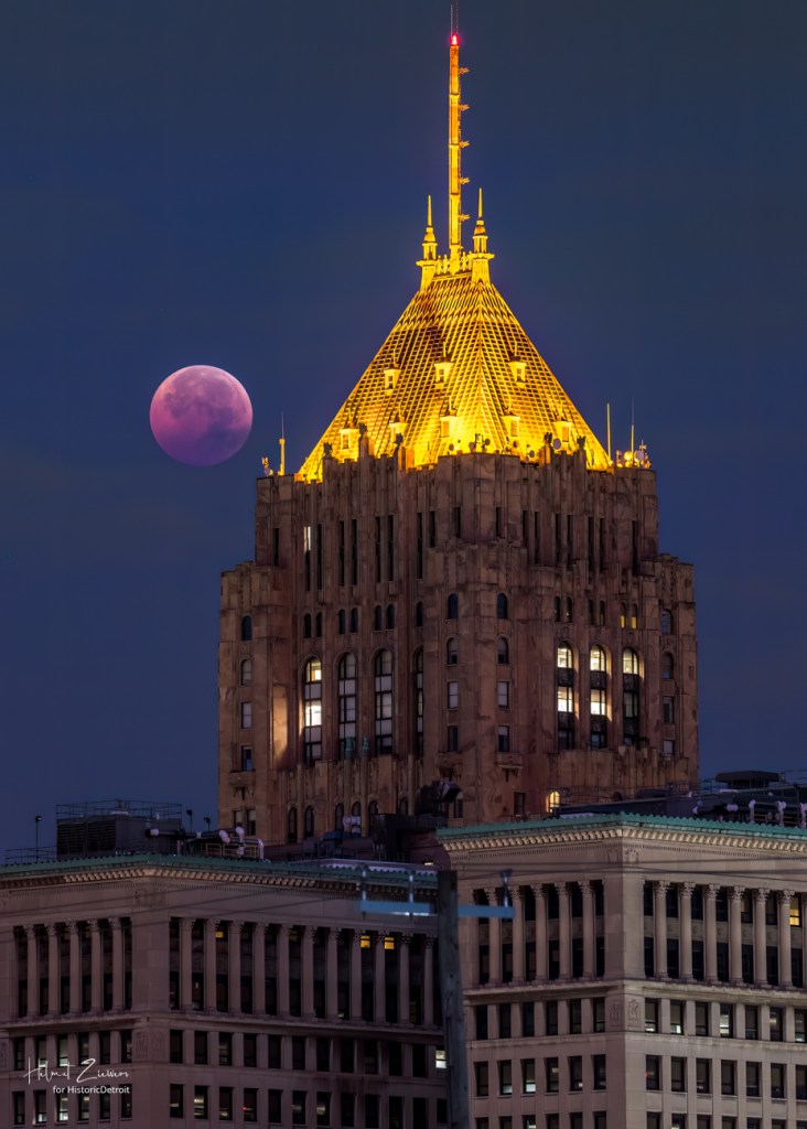 Fisher Building with Full Moon Eclipse in Nov. 2022