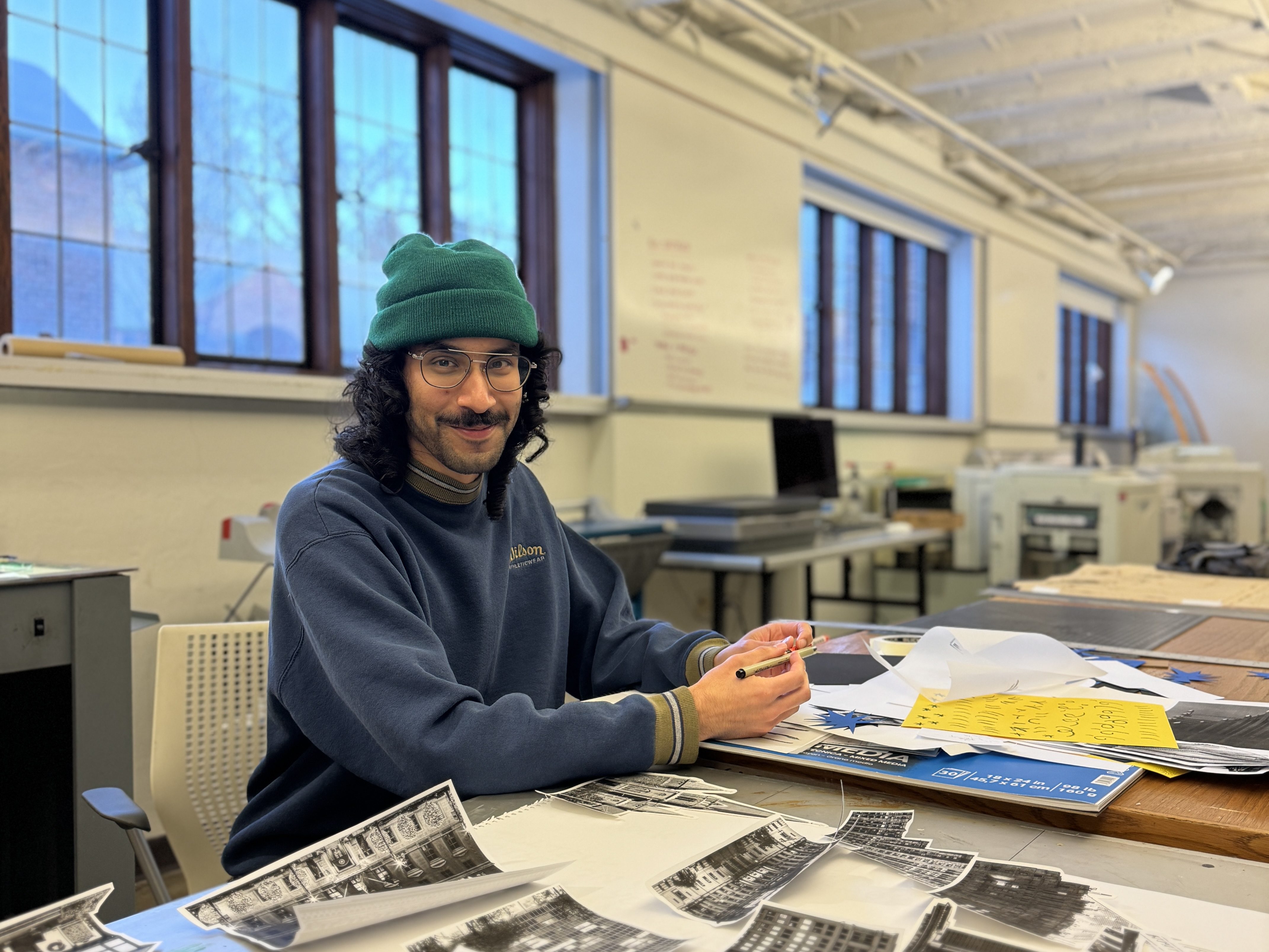 Luis Quintanilla, CAA ’24, working on the poster. Luis is from Austin, Texas, and earned their BFA from Virginia Commonwealth University.