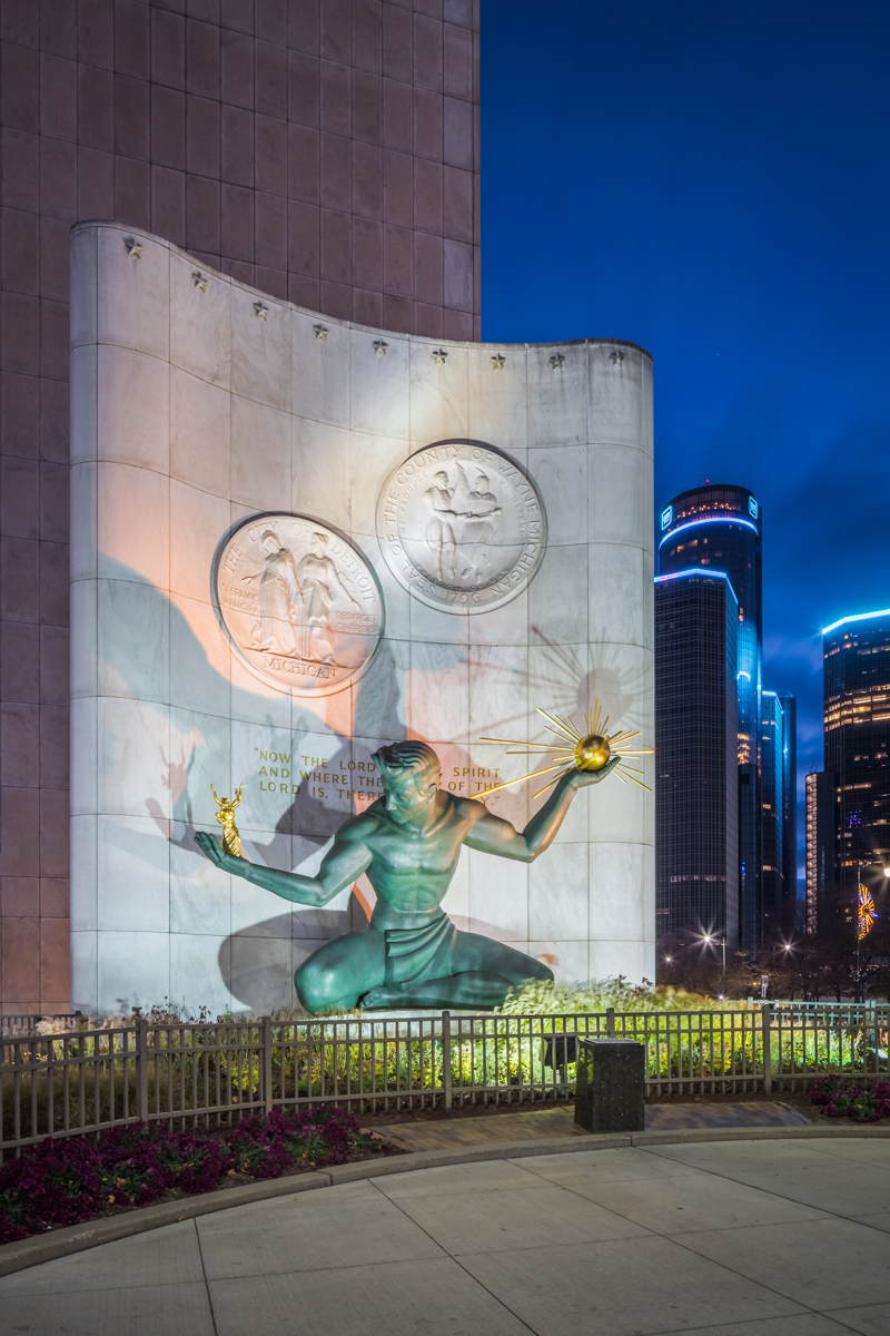 Marshall M. Fredericks’ The Spirit of Detroit, 1958, photographed by Helmut Ziewers for Historic Detroit Area Architecture.