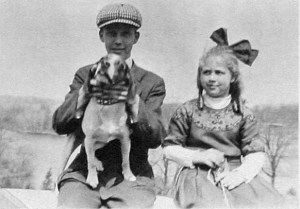 Harry (Thistle) and Florence (Smike) Booth with Spot in 1912. Courtesy Cranbrook Archives, Cranbrook Center for Collections and Research.