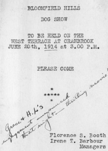 Invitation to the Bloomfield Hills Dog Show, June 20, 1914, on the West Terrace at Cranbrook House. Courtesy Cranbrook Archives, Cranbrook Center for Collections and Research.