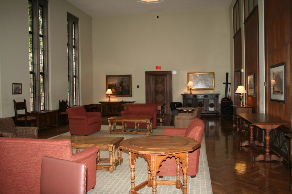 Six months before George Booth bought the painting, another version of The Death of General Wolfe was presented to the University of Michigan at Ann Arbor, by William L. Clements. Clements, a noted collector of American artifacts and documents, bought the painting to ornament the library of Americana that he had just given to the university, the William L. Clements library. The painting at Ann Arbor is a full-scale replica of the original work, painted by Benjamin West in 1775 for the Prince Regent of Waldeck, a region in Germany. The library, with its new painting in place, opened to the public in June of 1928, when visitors packed the rooms to see the collection. The Booths may well have been in attendance, and would certainly have been aware of the well-publicized gift. Perhaps it was Clements’s generosity that inspired George Booth to seek out a Death of General Wolfe for the Cranbrook campus as well.