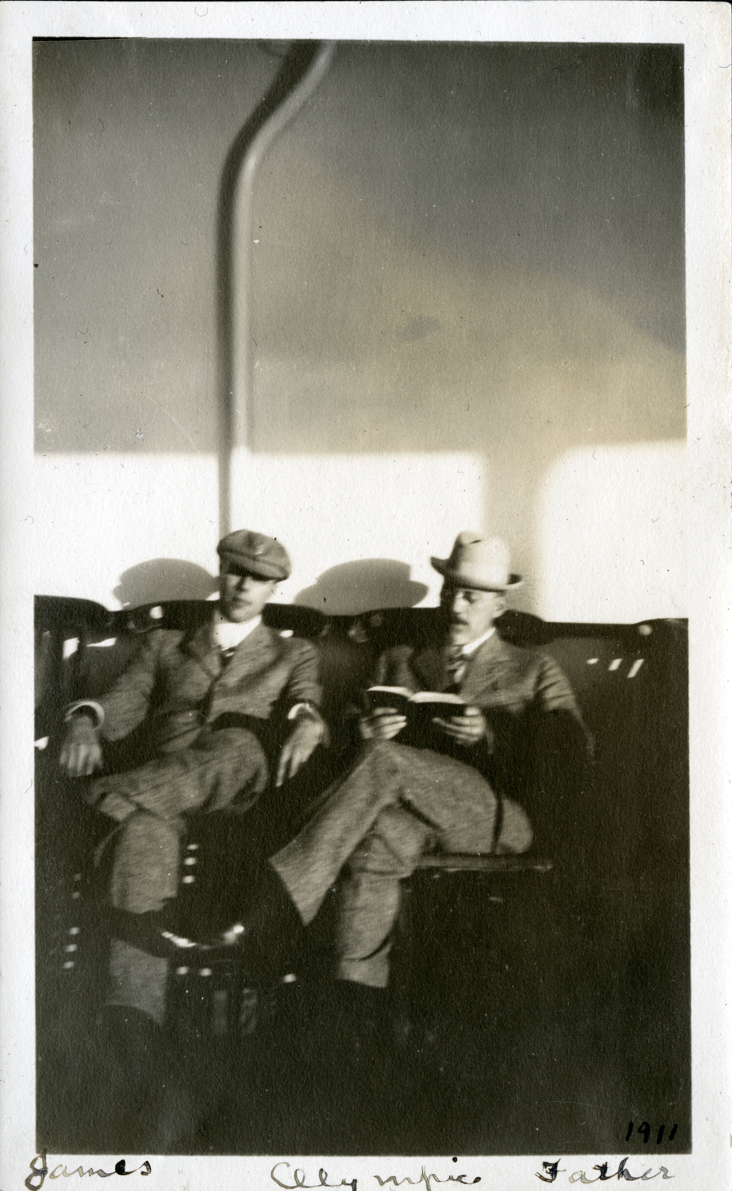 James Scripps Booth and George Gough Booth on the RMS Olympic, July 1911.[POL1.10.2] Courtesy of Cranbrook Archives, Cranbrook Center for Collections and Research.