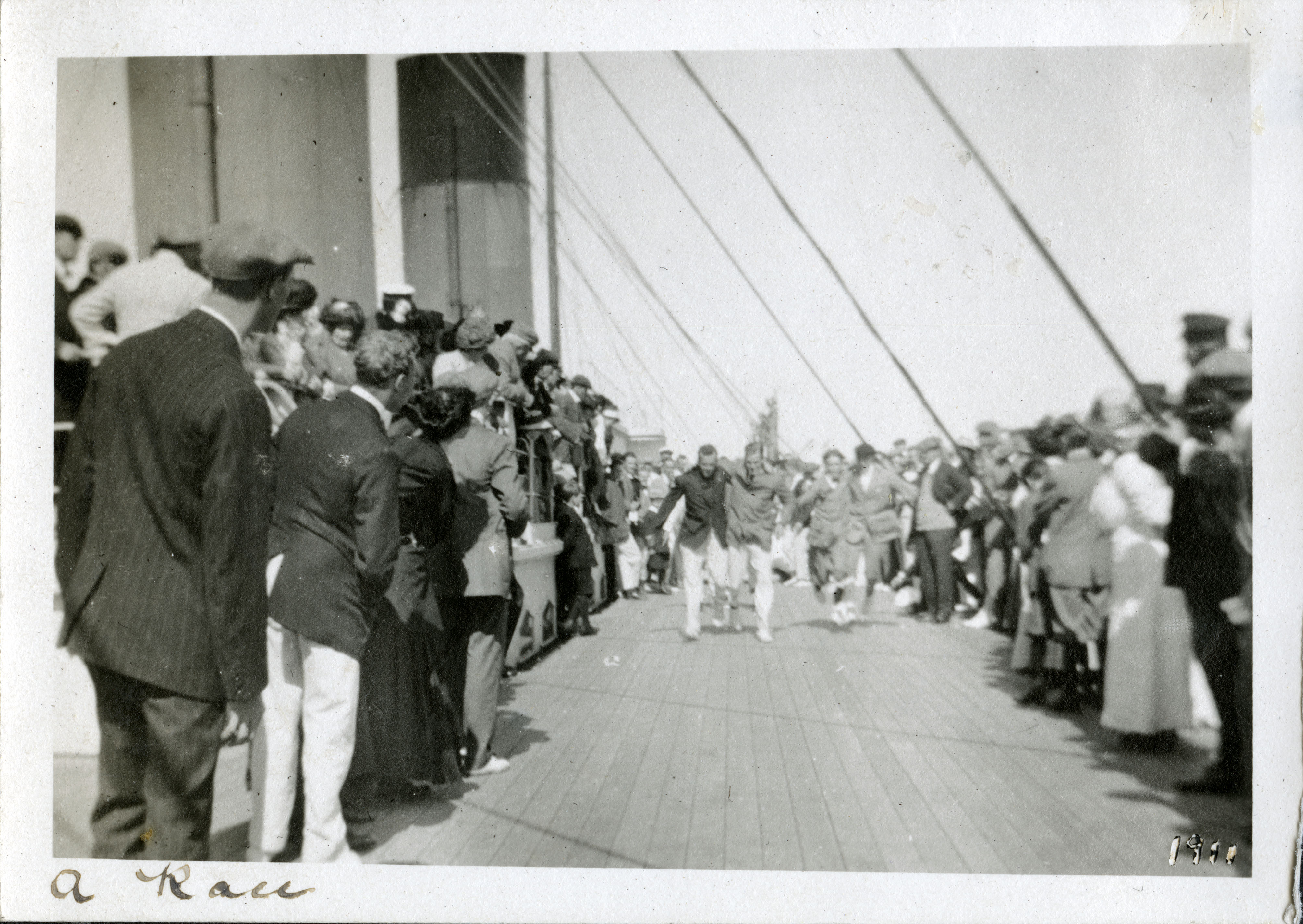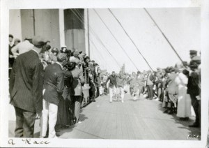 A race aboard the RMS Olympic on its first eastward crossing from New York to Southampton, July 1911. [POL1.12.5]. Courtesy of Cranbrook Archives, Cranbrook Center for Collections and Research.