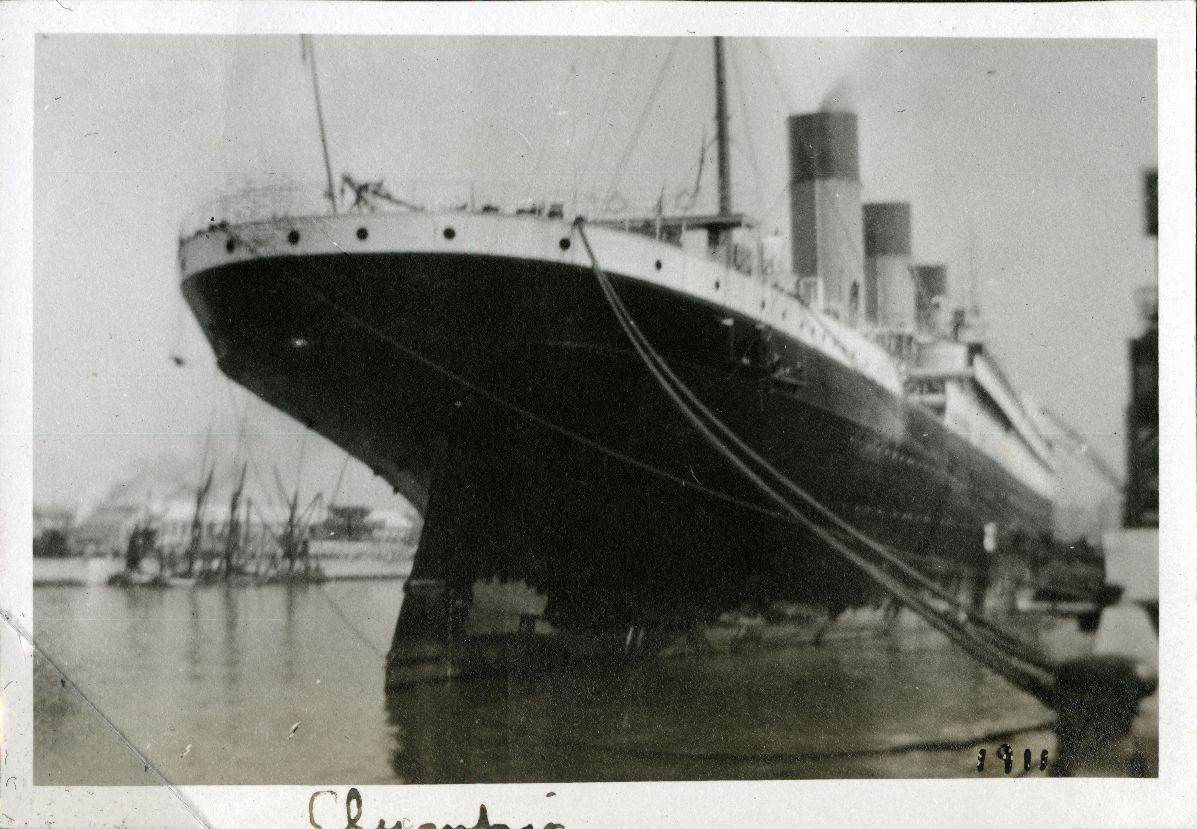View of RMS Olympic before its first eastward crossing, June 28, 1911. [POL1.14.5]. Courtesy of Cranbrook Archives, Cranbrook Center for Collections and Research.
