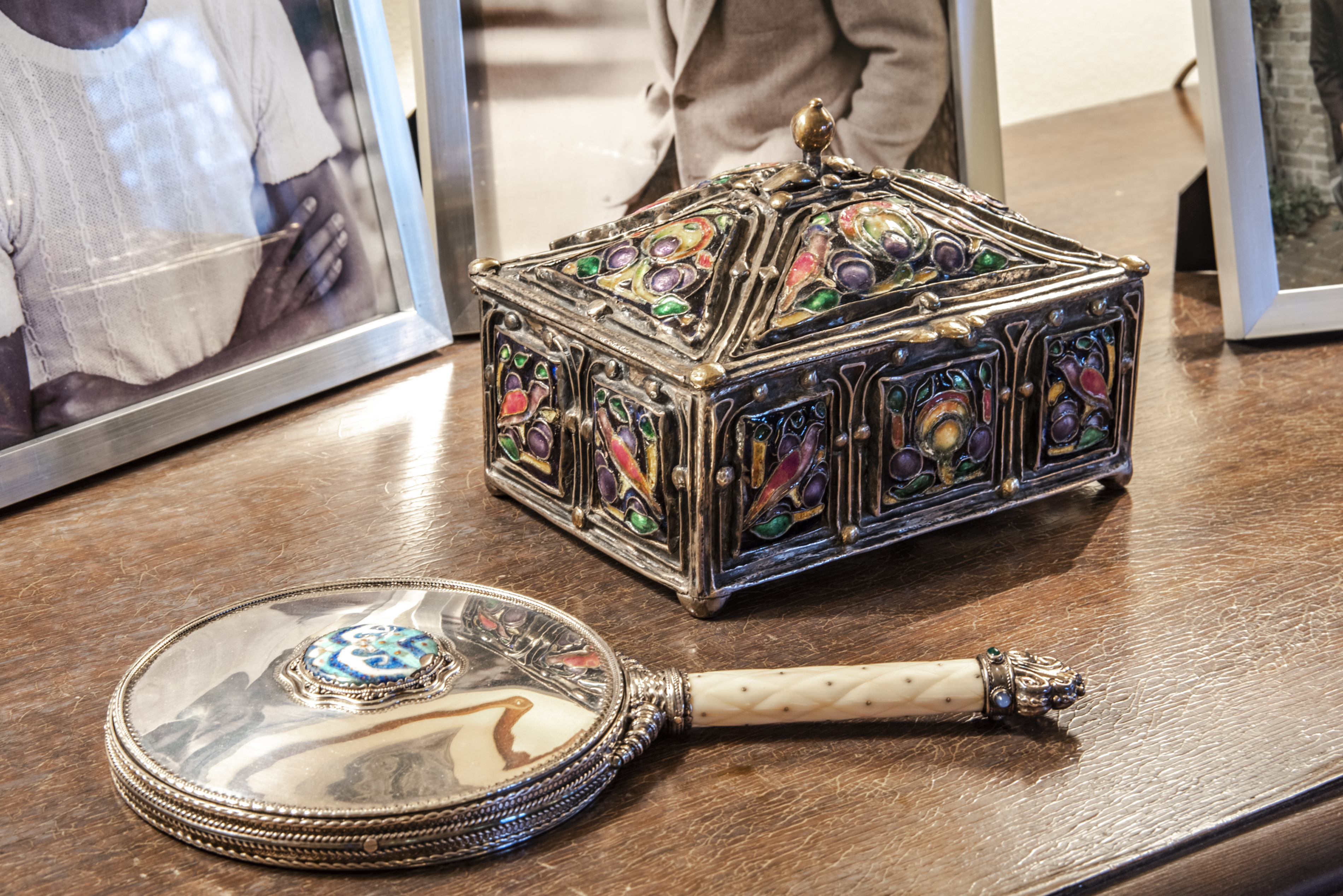 As an artist, Copeland embraced the Arts and Crafts movement’s ideals. Eschewing a machine-like precision in her work, her silver work proudly exhibits subtle variations and inconsistencies that distinguish them as truly hand-crafted objects. Her enamel work embraces the fluidity of the medium, allowing different colors to flow into one another within each metal embrasure shaped to contain the liquid medium. Unlike most women artists of her time, Copeland was able to support herself independently through the sale of her work, during a career of more than three decades. She exhibited her work at many venues, including the Detroit Society of Arts and Crafts, where Henry Scripps Booth purchased the silver box that would hold the ring for his wedding, two years later.