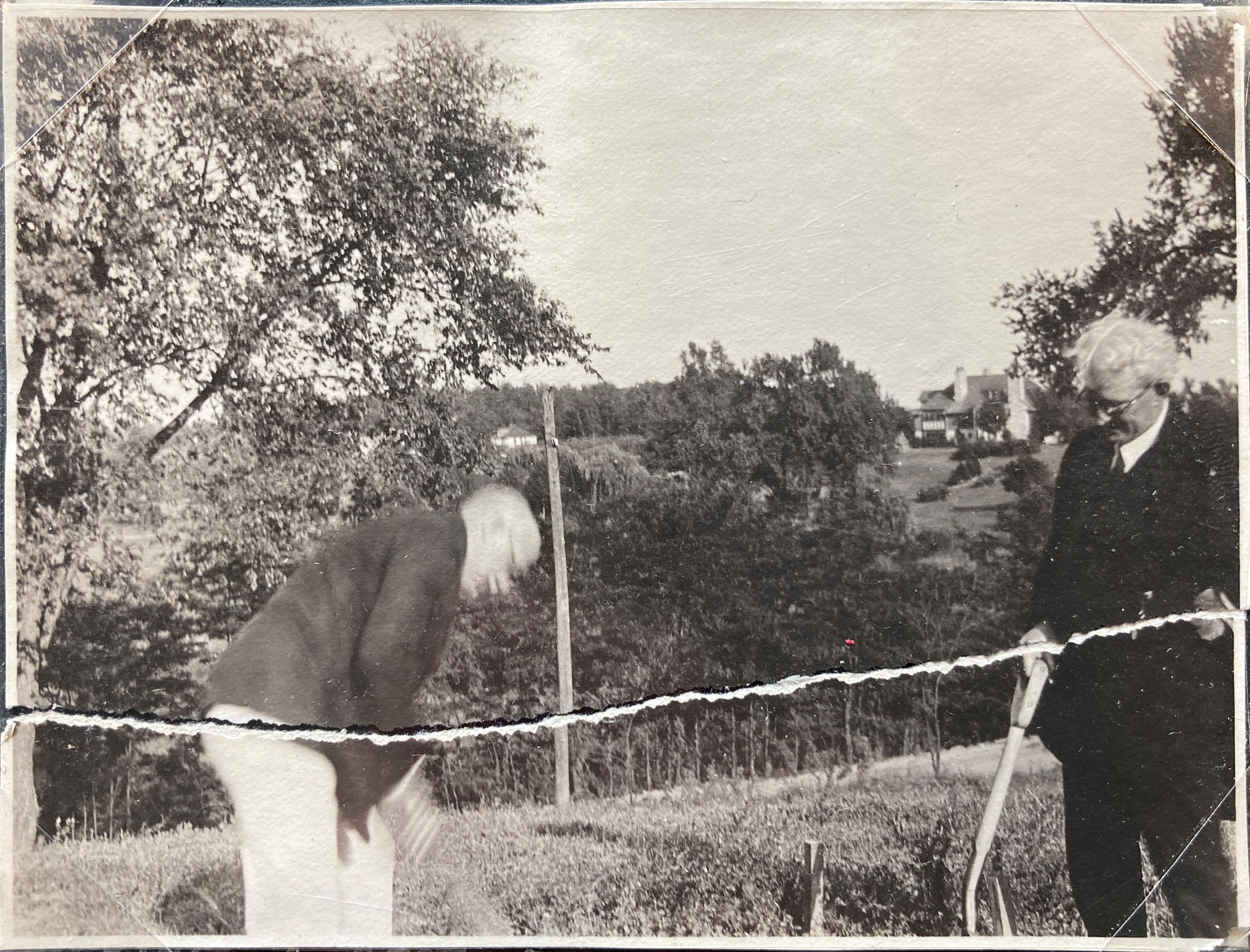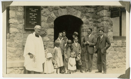 The Groundbreaking took place during the afternoon of Sunday, July 5, 1925, with about seventy five persons present. Following a mission service in the Meeting House, the congregation walked to the brow of the hill on the church site (Henry Scripps Booth later suggested it was about where the tower now stands) and they broke ground. He recalled that, “the earth was so hard it was impossible to put in a spade,” so his father used a pick for about ten minutes before Dr. Marquis managed to remove a spade full of earth. Mr. and Mrs. Booth followed as did others, including Gustavus Pope.