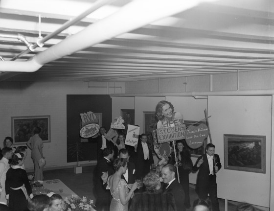 Academy of Art students parade through the opening night gala reminding attendees of the student exhibition simultaneously on display at the Pavilion. Courtesy Cranbrook Archives.