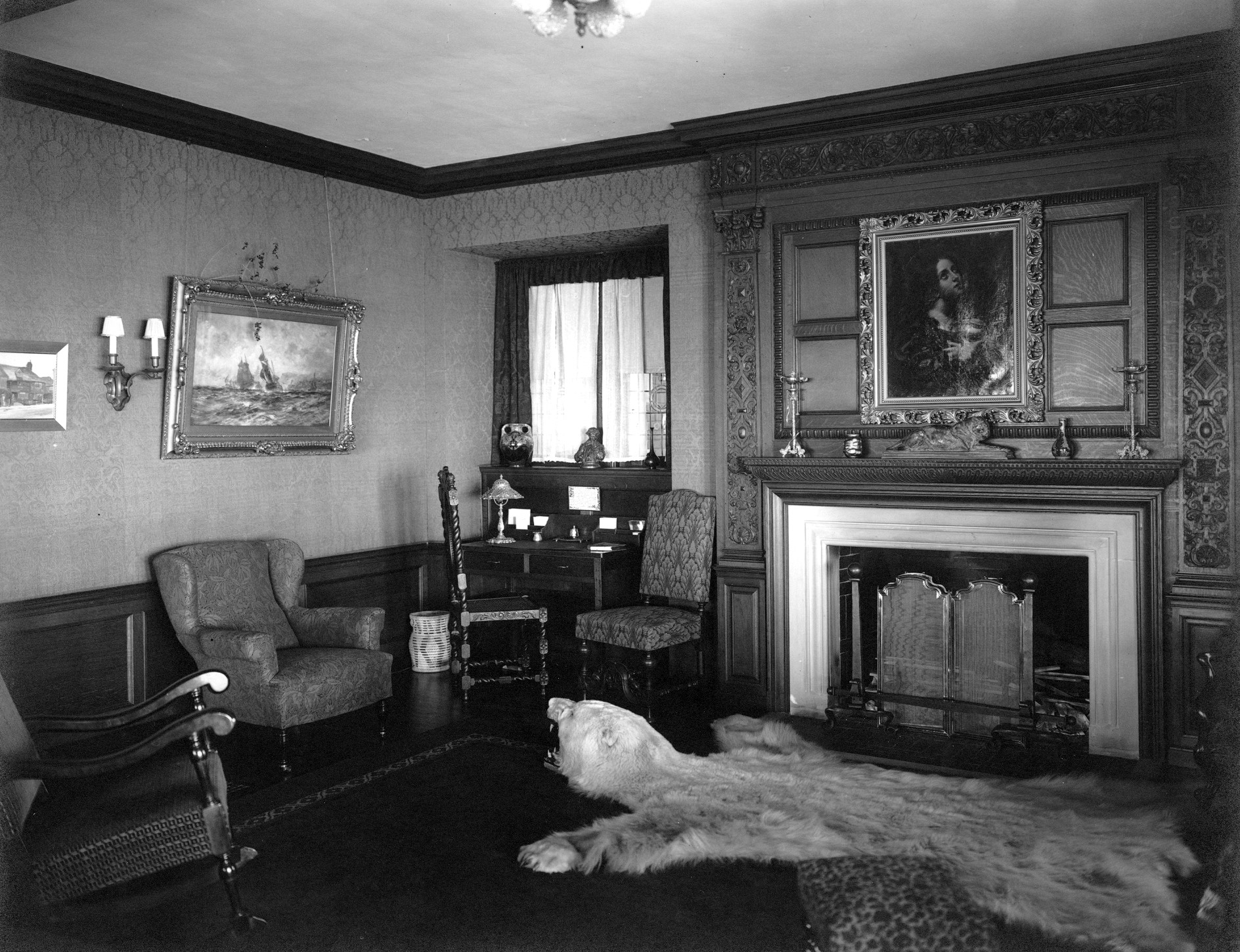 Cranbrook House Living Room, circa 1909, with Marine visible on the left. Cranbrook Archives, Cranbrook Center for Collections and Research.