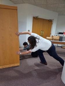 But, let it be known that work at the collections isn’t all comfortable work behind a desk or searching a filing cabinet. This illusion, if I ever had it, was quickly broken on my first full day of the internship. Our task? Moving five solid wood cabinets from the rooms of retirement-age nuns across the building to be used to store Cranbrook’s lacy dresses and costumes.