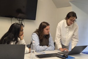 Kamilah and I workshopping our reel for Carl Milles’s 150th birthday with Jess, May 2025. Photography by Leslie Mio.