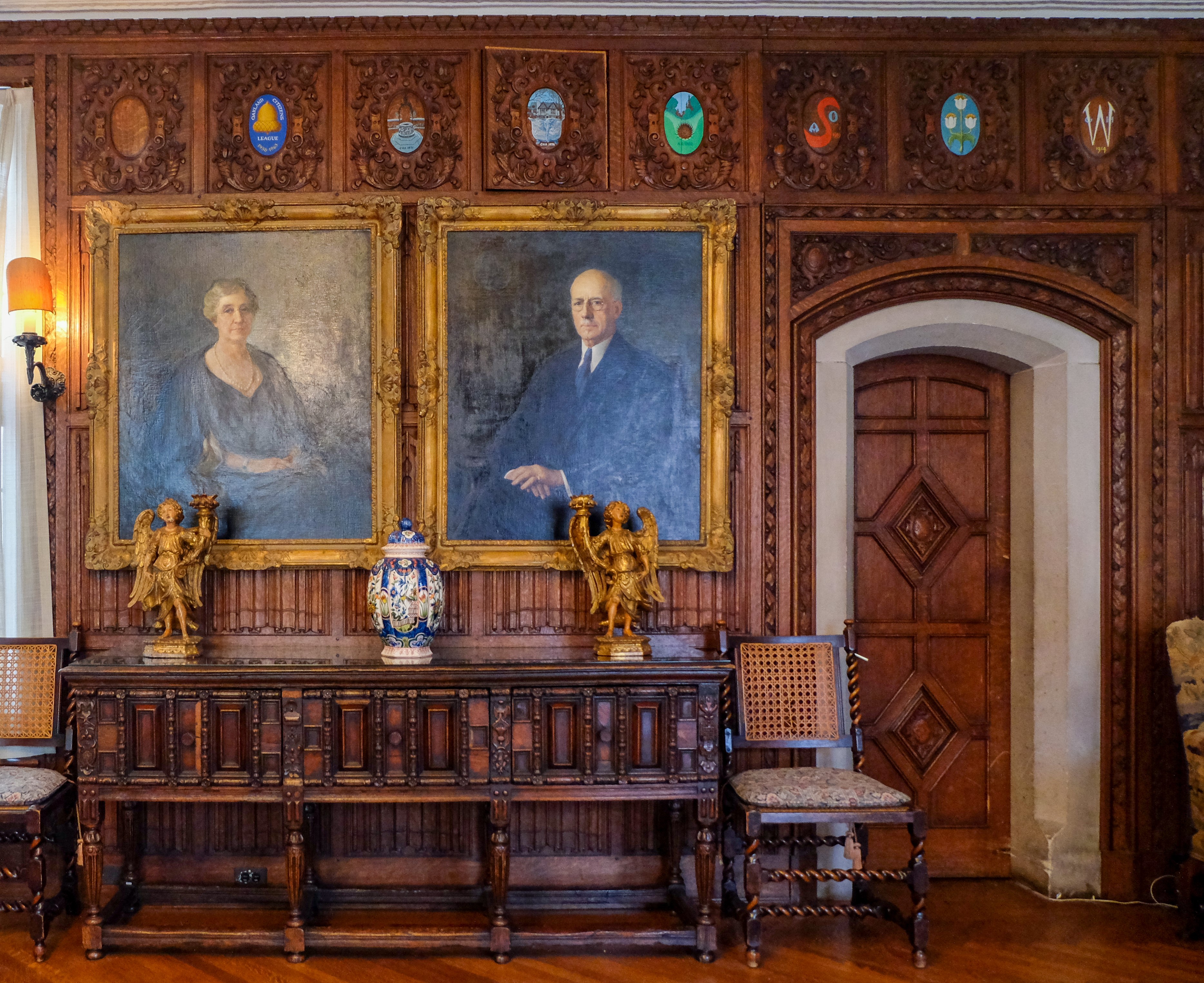 This past March, a new cartouche was painted in the Oak Room. The design was created and carried out by Corey Booth, the great-grandson of Henry Scripps Booth and an artist and animator. His portfolio of work includes The Powerpuff Girls and Rick and Morty.