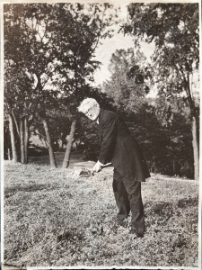 Rev. Dr. S. S. Marquis, D.D. with the first spade of earth, July 5, 1925. Courtesy of Cranbrook Archives, Cranbrook Center for Collections and Research.