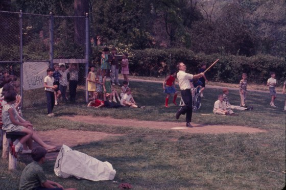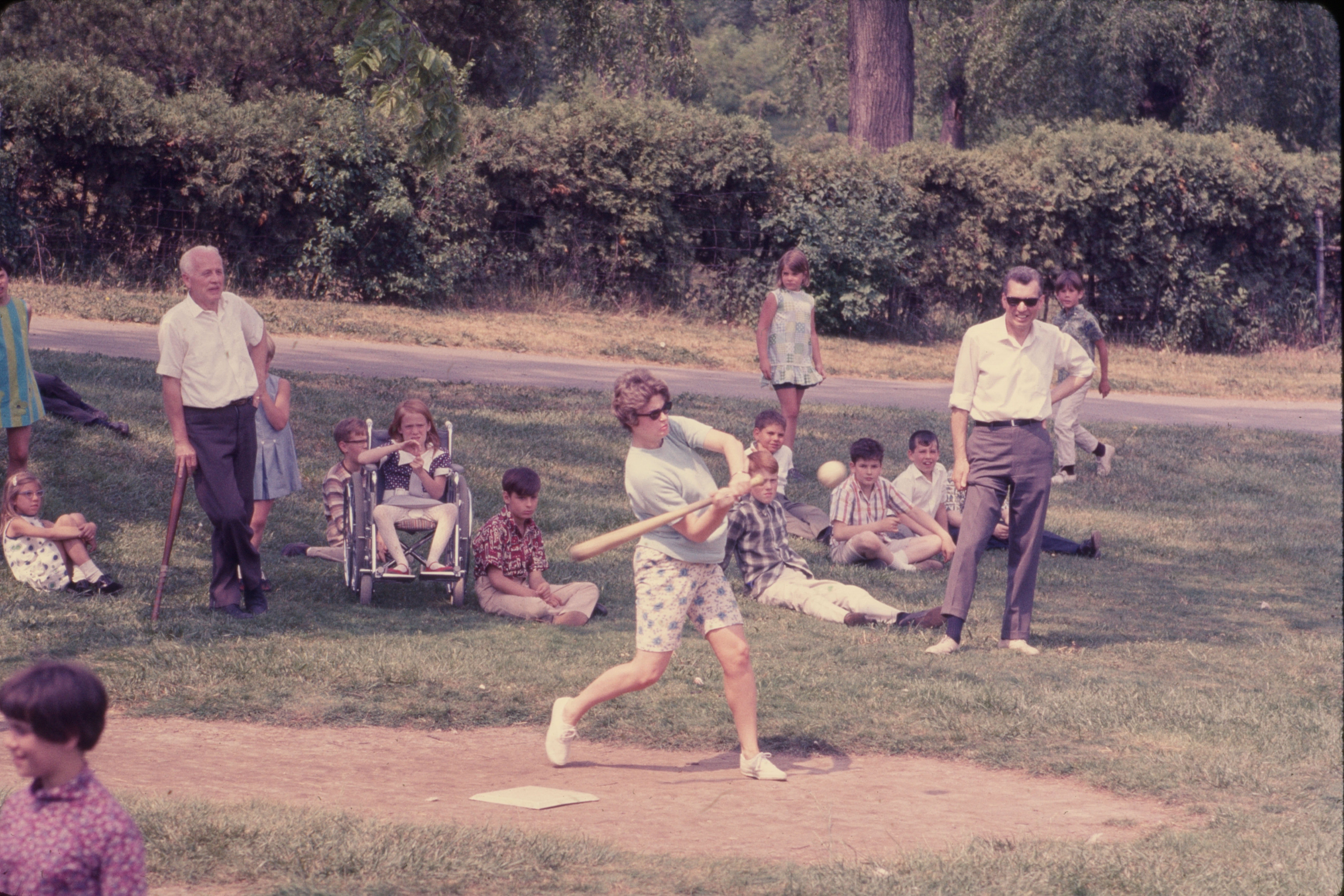 We recently received an addition to the James Carmel Papers from his son, which includes slides capturing the June 1967 softball game. The colorful images convey the camaraderie and joy of the event, with both faculty and students enthralled by the gameplay.