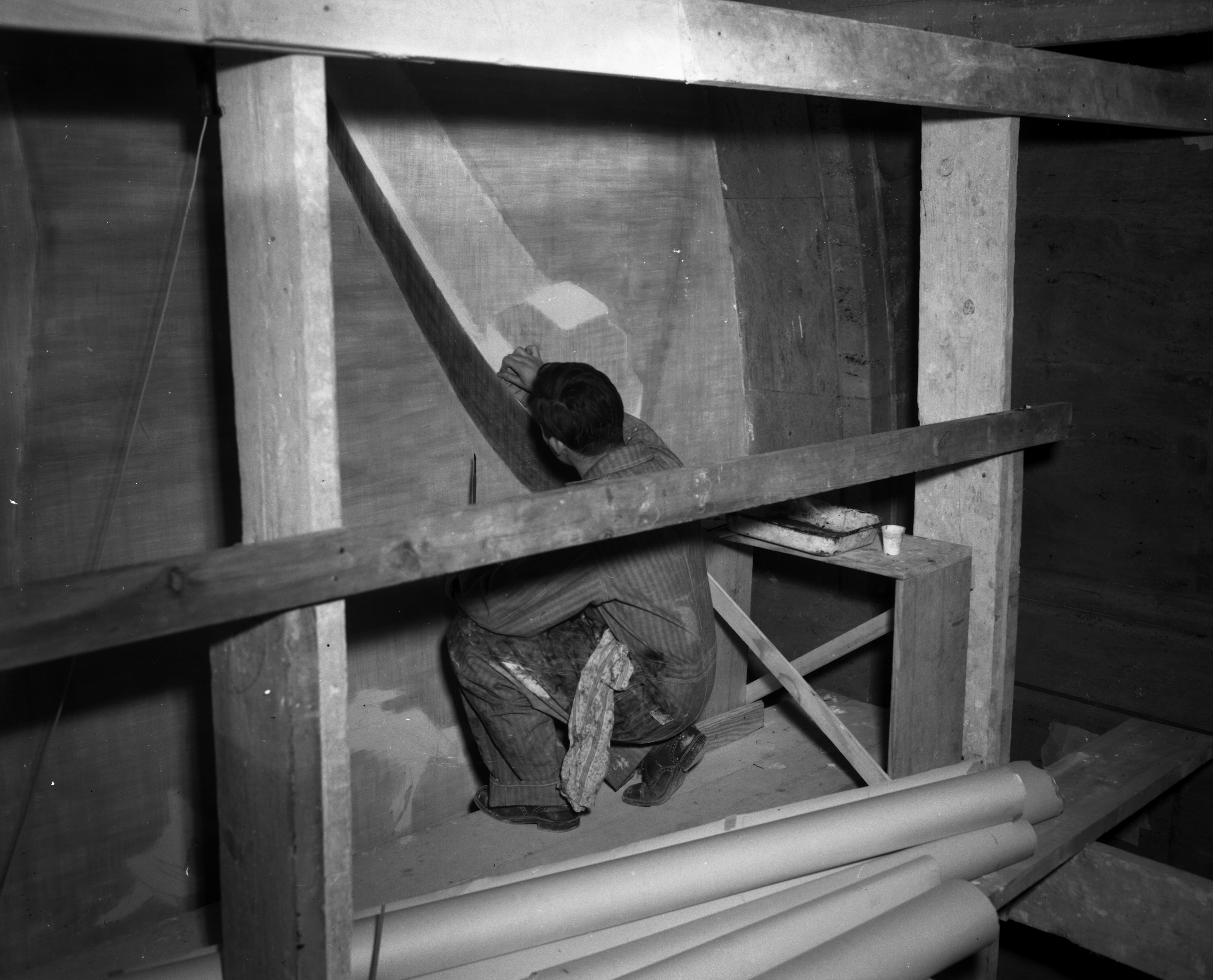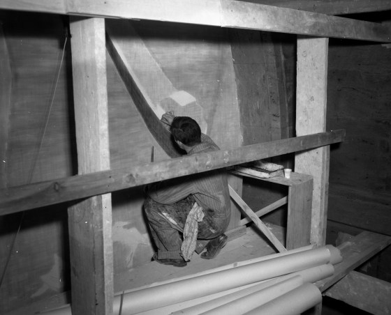 Work progresses with the application of large blocks of color. Cranbrook Archives.
