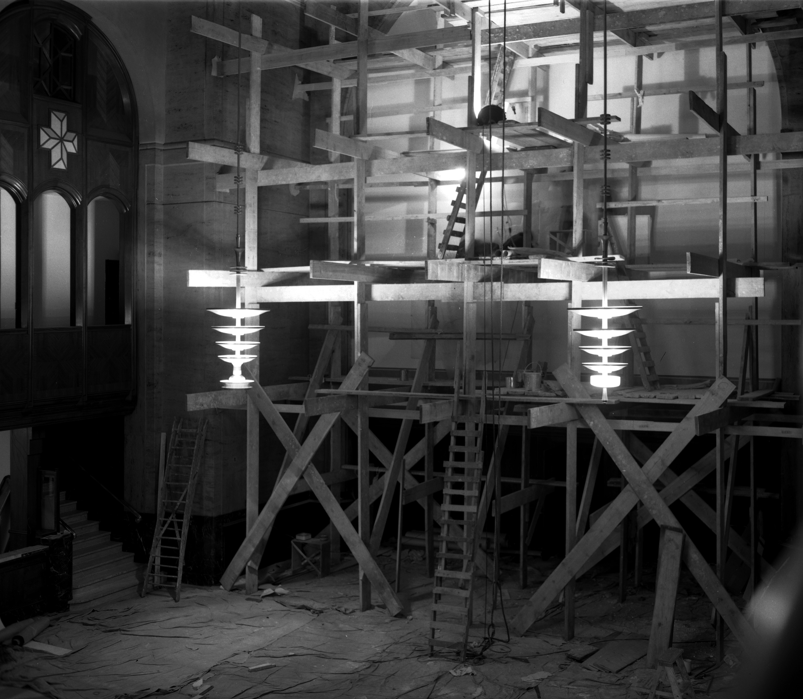 Scaffolding is erected. Cranbrook Archives.