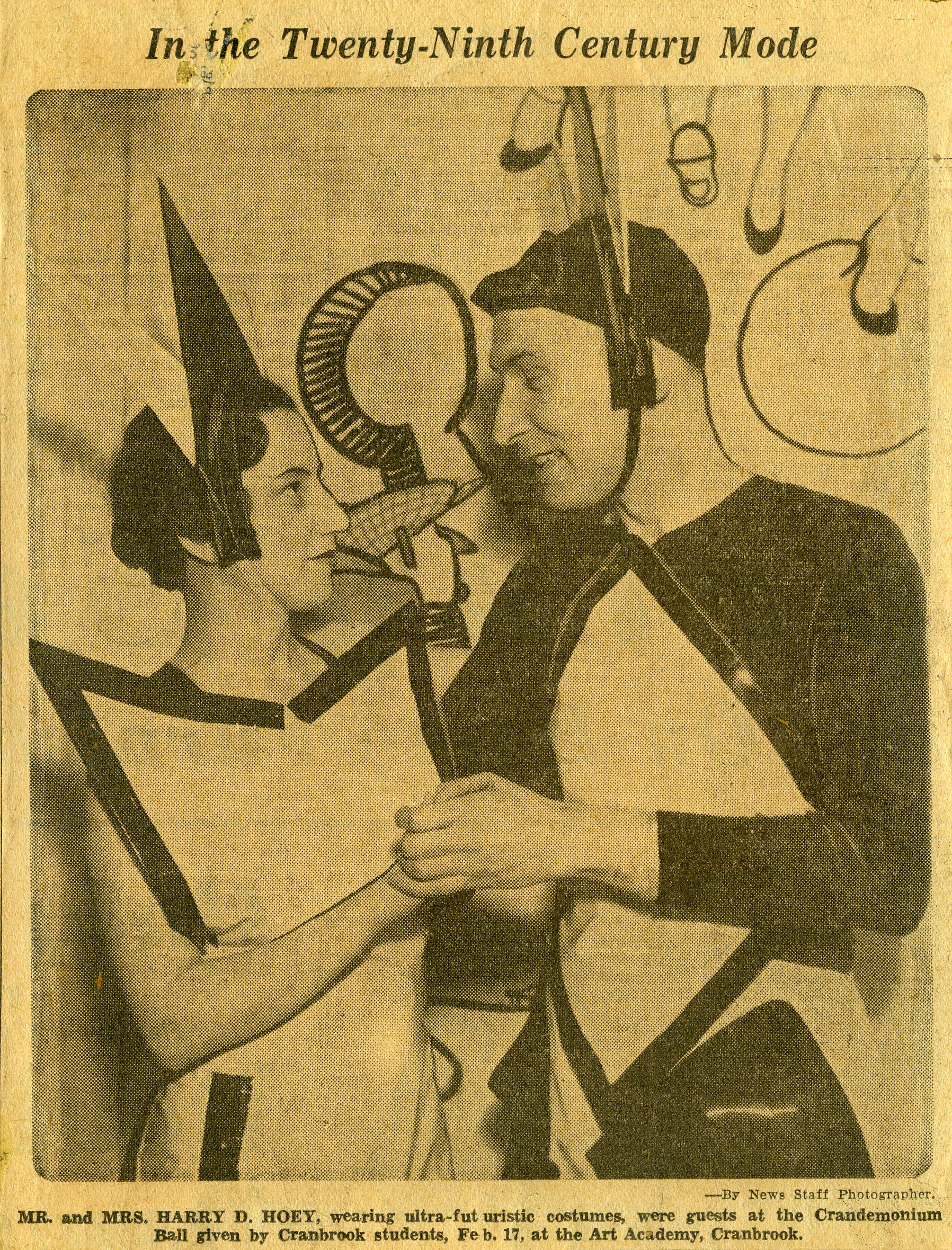 The theme of the first Crandemonium Ball was the Court of Crandemonium. It prompted this newspaper article declaring that the party was in the “twenty ninth century mode.” 1934, Cranbrook Archives.